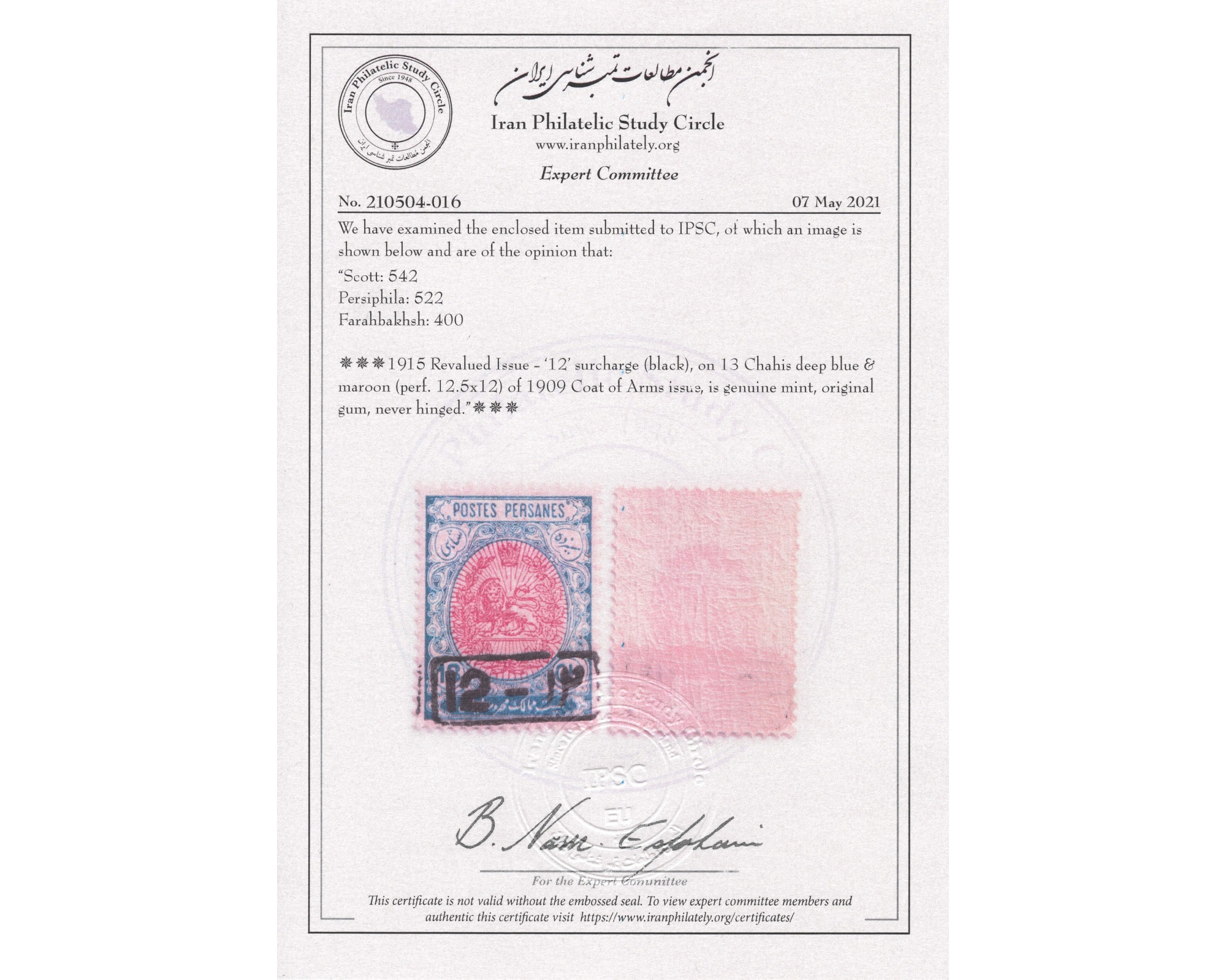 Condition: Mint Never Hinged Certificate By IPSC بدون اثر شارنیهبرای دیدن با بهترین کیفیت ماوس کامپیوتر را روی تصویر تکان دهید