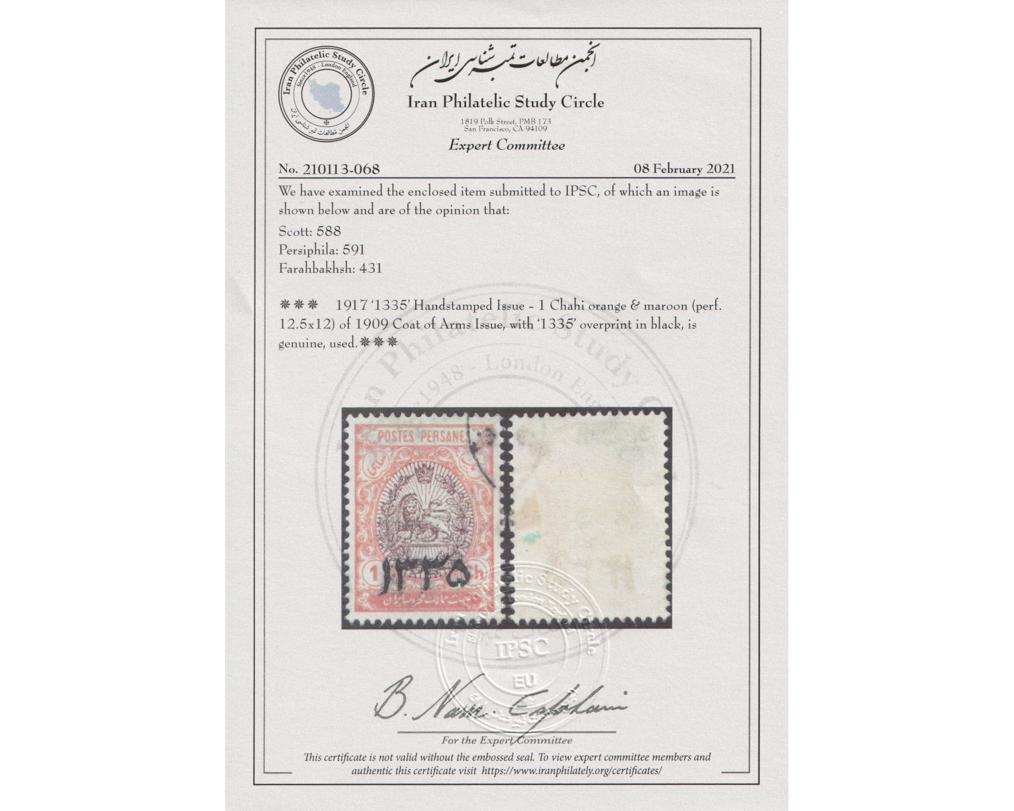 IPSC یک شاهی بارو چاپ ۱۳۳۵ هجری با سرتیفیکیت