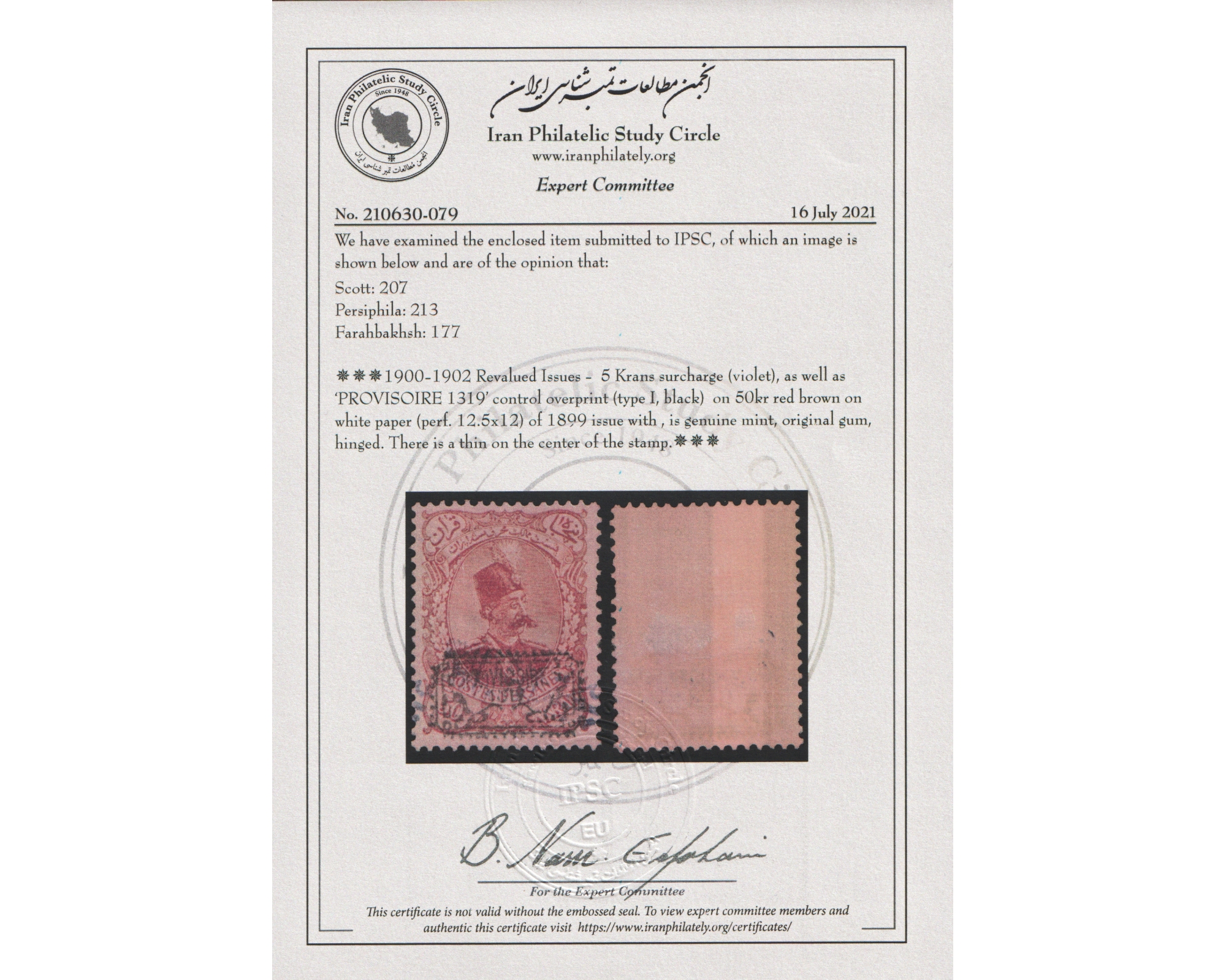 Certificate By IPSCCondition; Mint Trace of Hinge با اثر شارنیهبرای دیدن با بهترین کیفیت ماوس کامپیوتر را روی تصویر تکان دهید