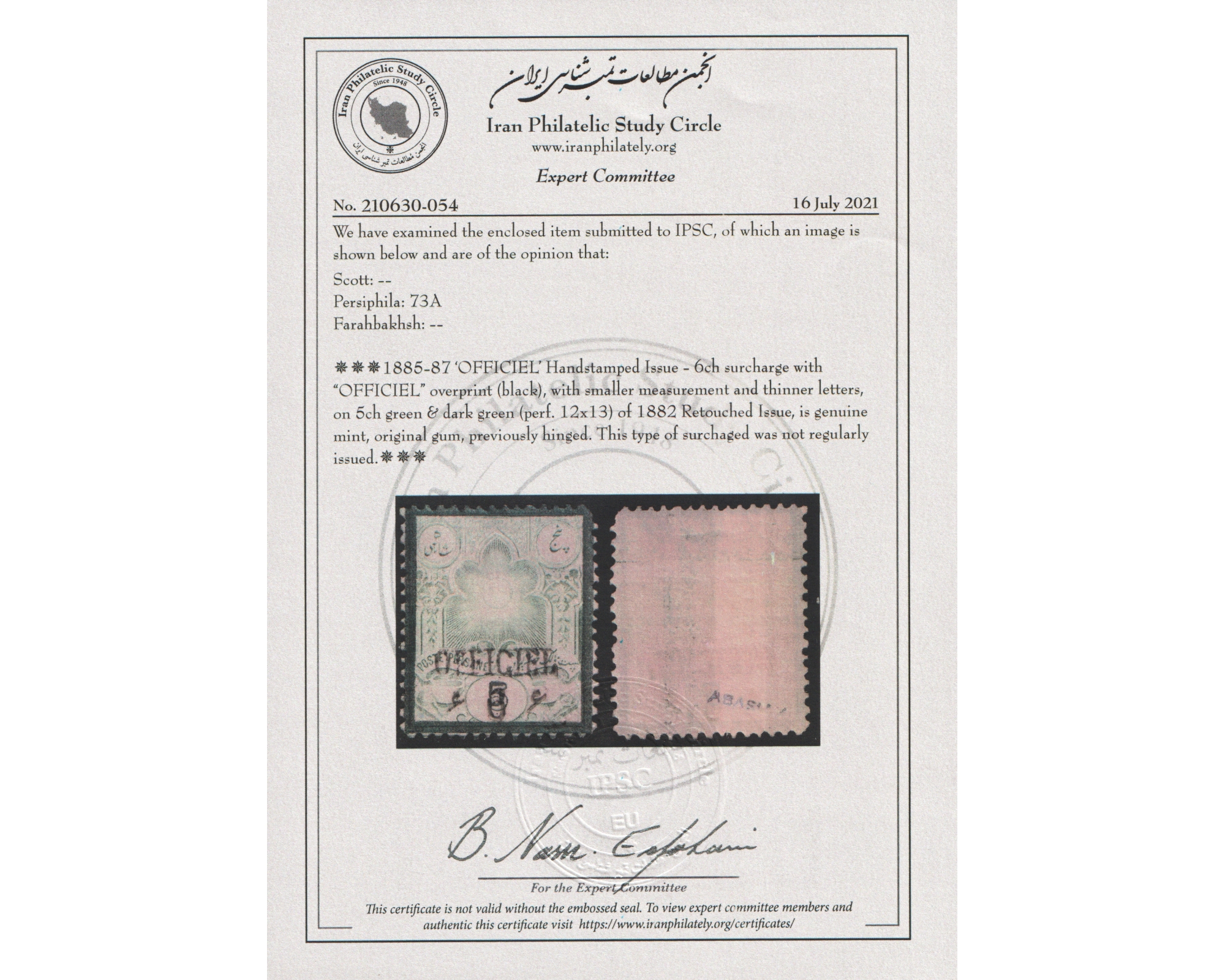 Certificate By IPSCCondition; Mint Lightly Hinged با اثر ضعیف شارنیهبرای دیدن با بهترین کیفیت ماوس کامپیوتر را روی تصویر تکان دهید