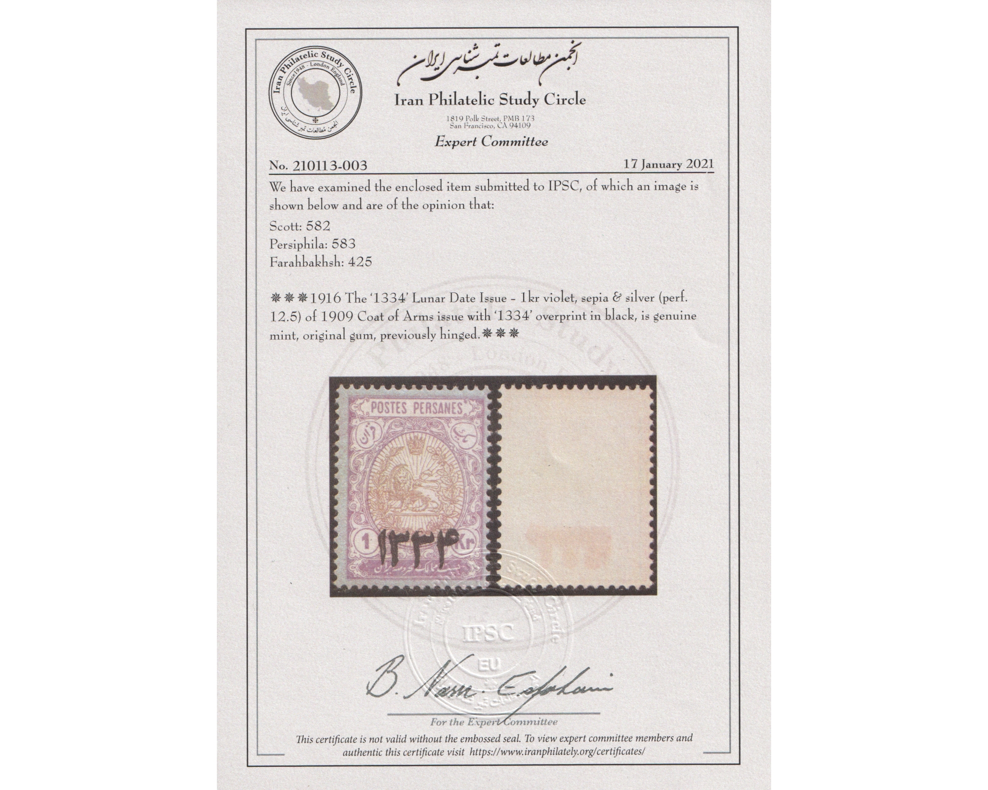مهر دستی ۱۳۳۴ روی تمبرهای مشروطه با سرتیفیکیت
