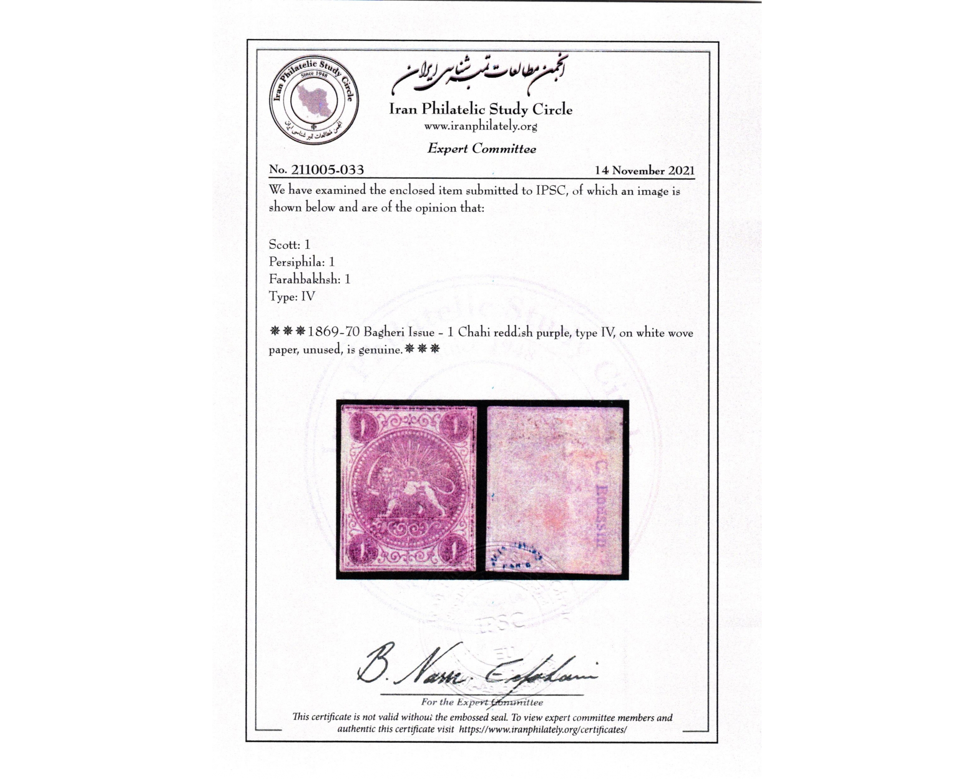 1870 1ch Bagheri Raddish Lilac Certificate By IPSC