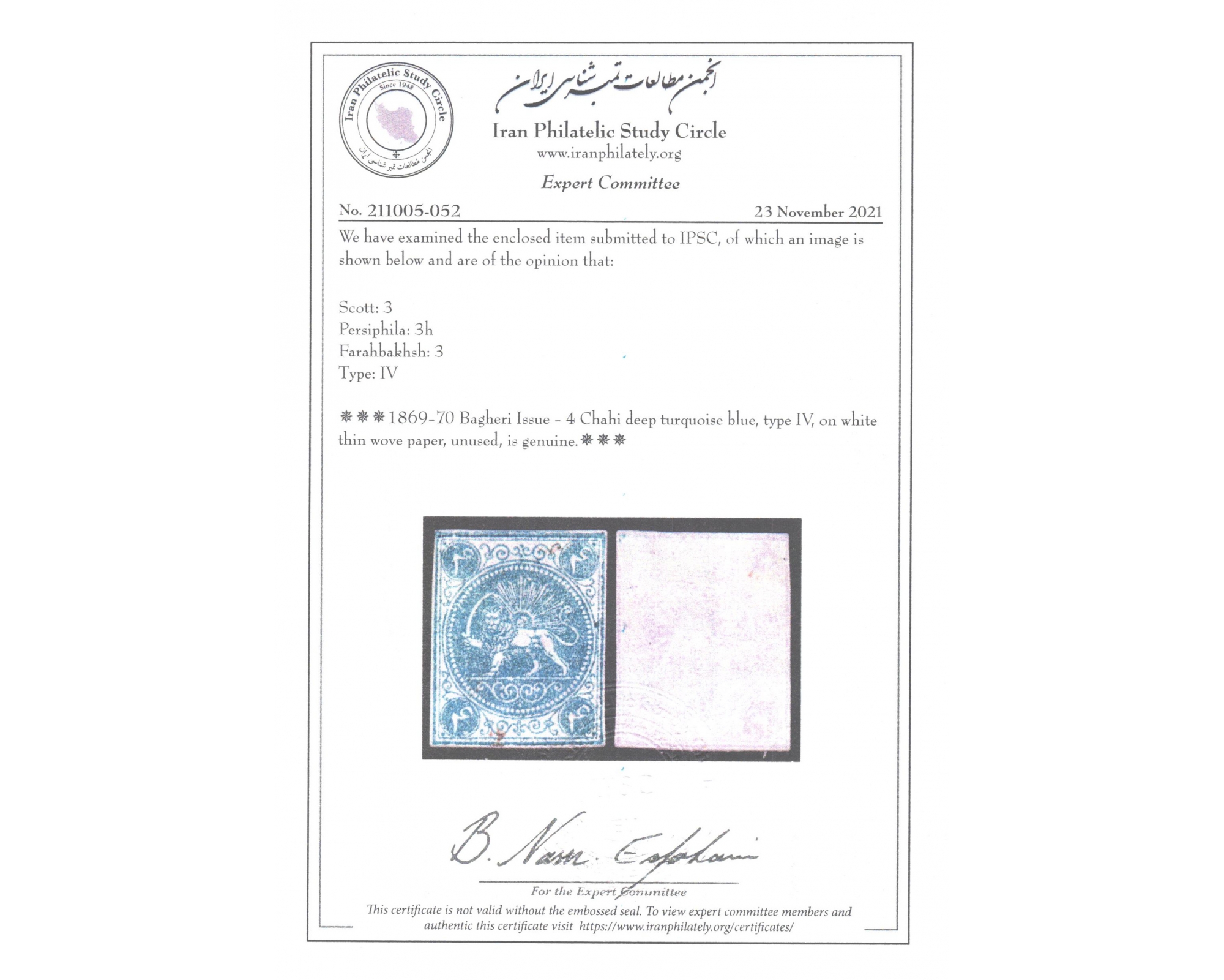 1870 4ch Bagheri Thin Paper Type IVCertificate by IPSCبرای دیدن با بهترین کیفیت ماوس کامپیوتر را روی تصویر تکان دهید