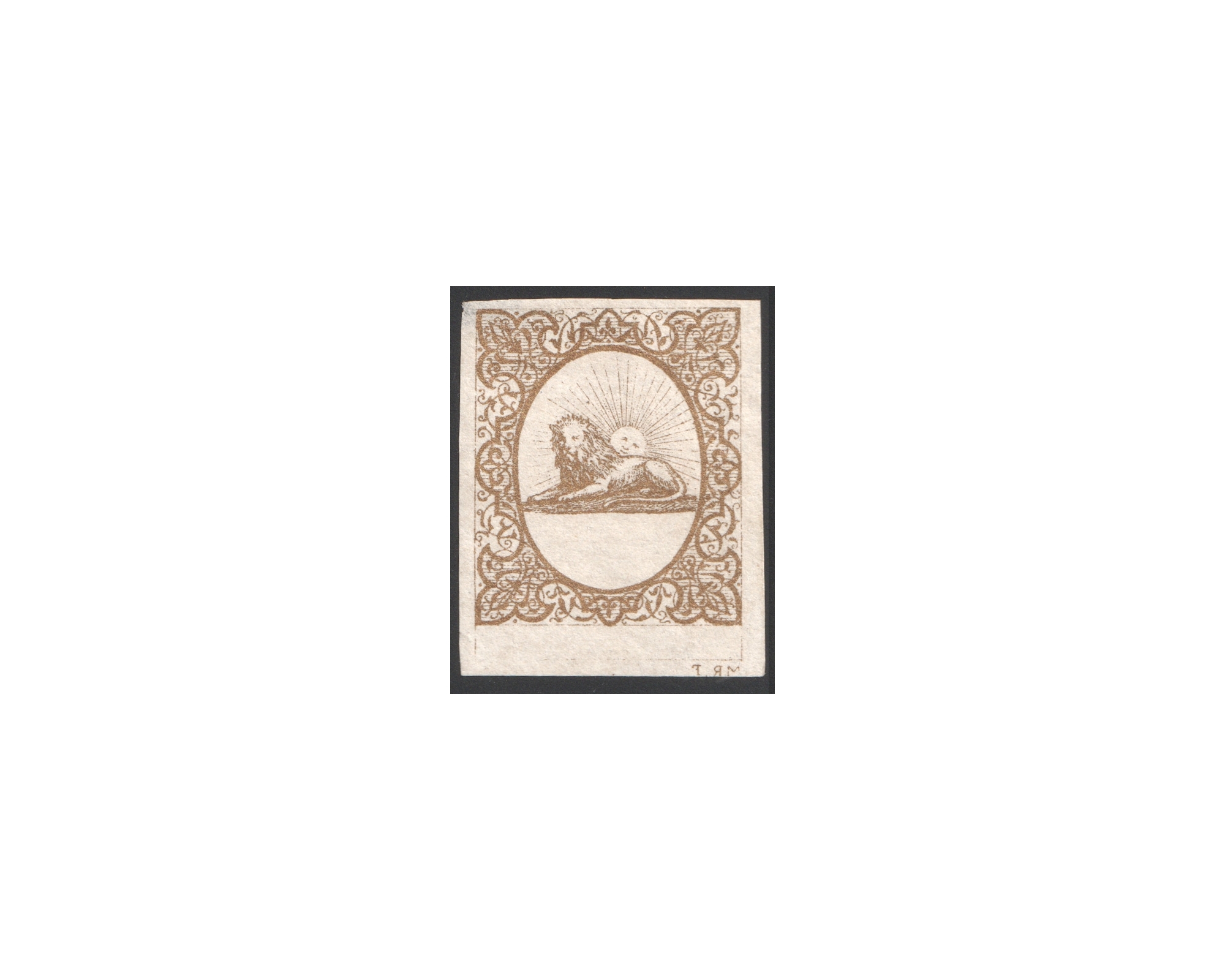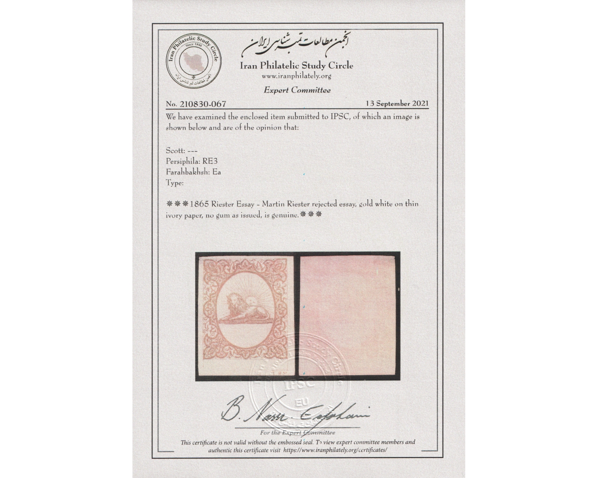 تمبر نمونه ریستر به رنگ طلایی روی کاغذ کرمی