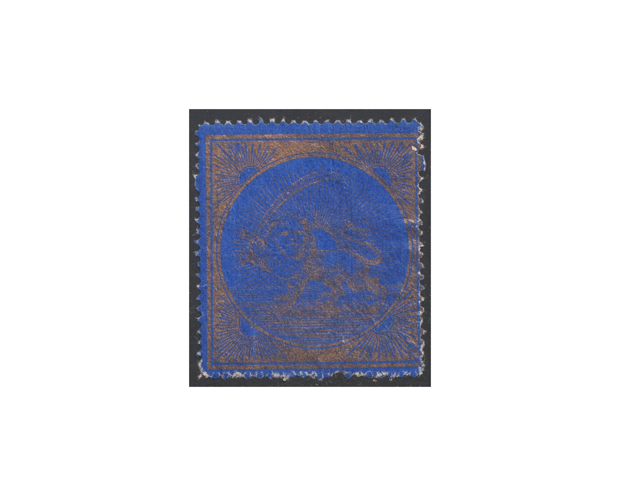 برچسب شیر و خورشیدی بزرگ آبی و طلایی
