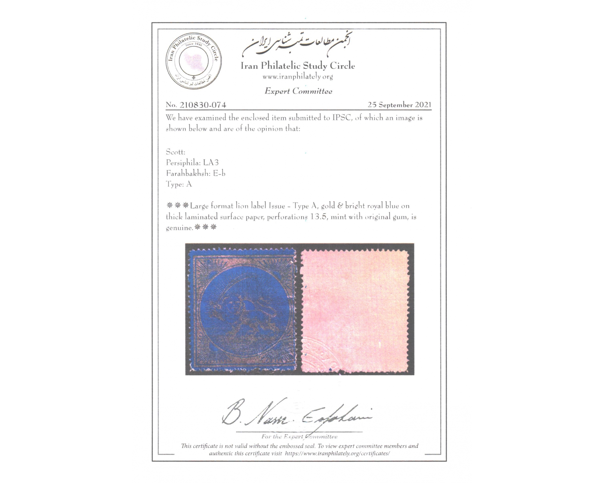 Certificate by IPSCبا چسب اصلی و مقداری چسب ریخته گیبرای دیدن با بهترین کیفیت ماوس کامپیوتر را روی تصویر تکان دهید