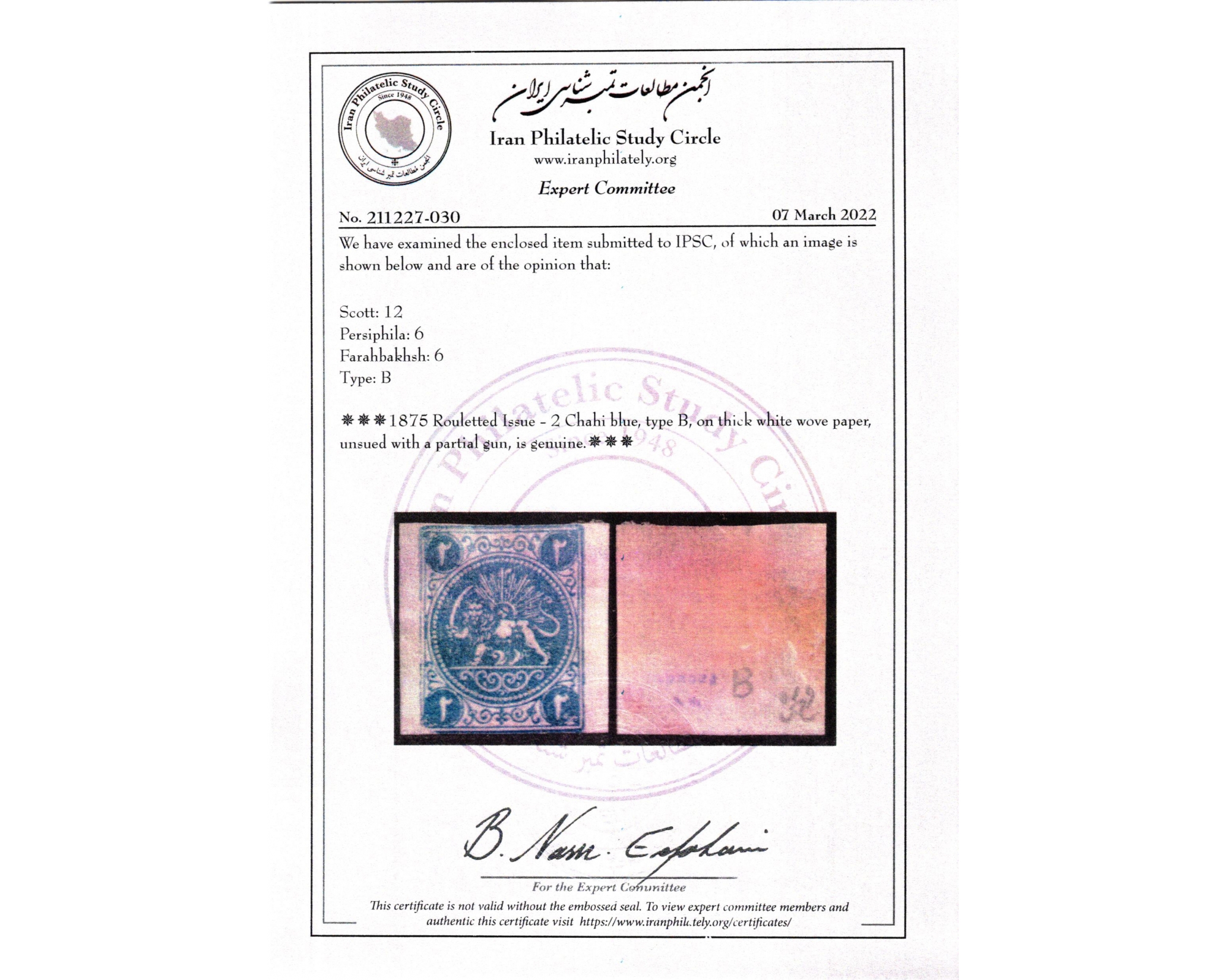 سال ۱۲۵۴ سری کاردی ۲ شاهی آبی