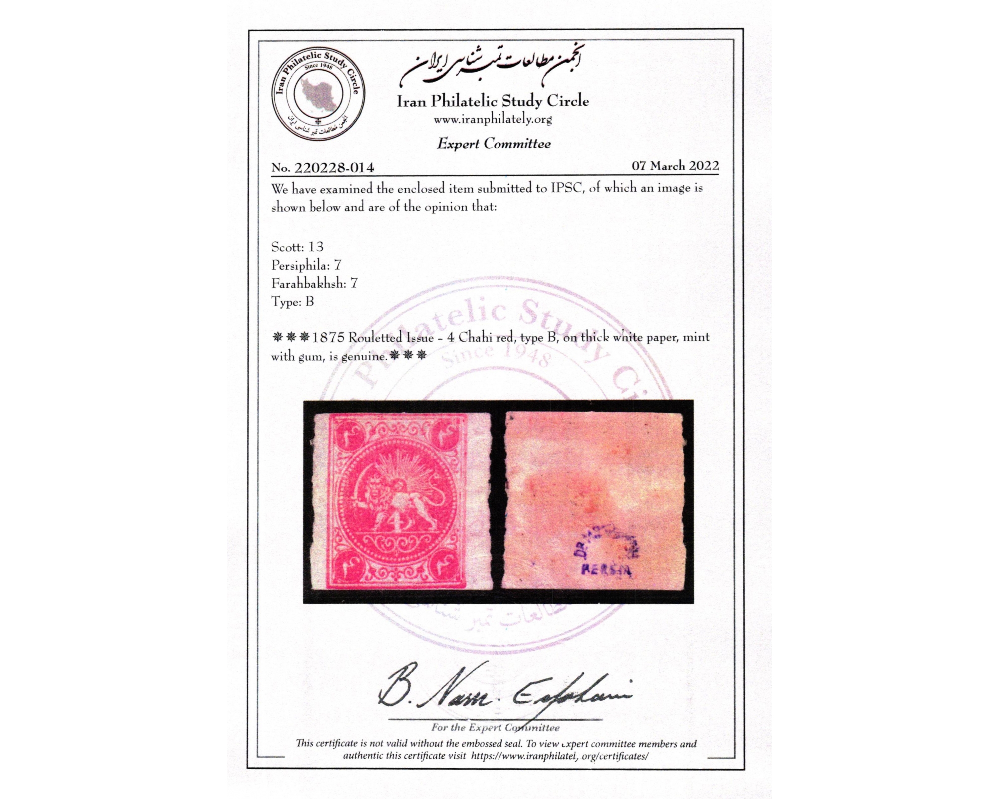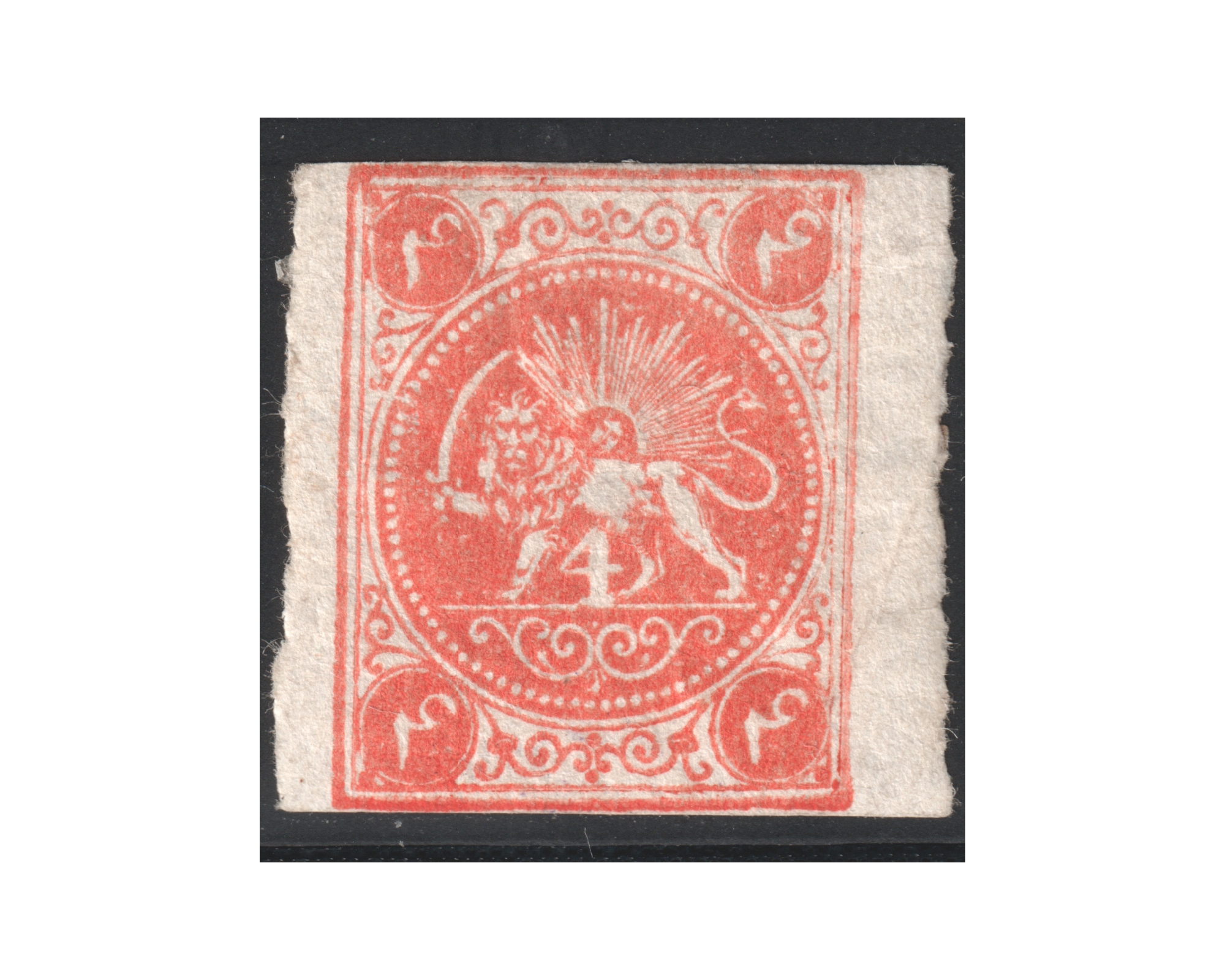 "Type B" سال ۱۲۵۵ـ چهار شاهی قرمز نارنجیCondition; Mint Original Gumنمونه با دندانه رولتی در دو طرفو با چسب اصلیبرای دیدن با بهترین کیفیت ماوس کامپیوتر را روی تصویر تکان دهید