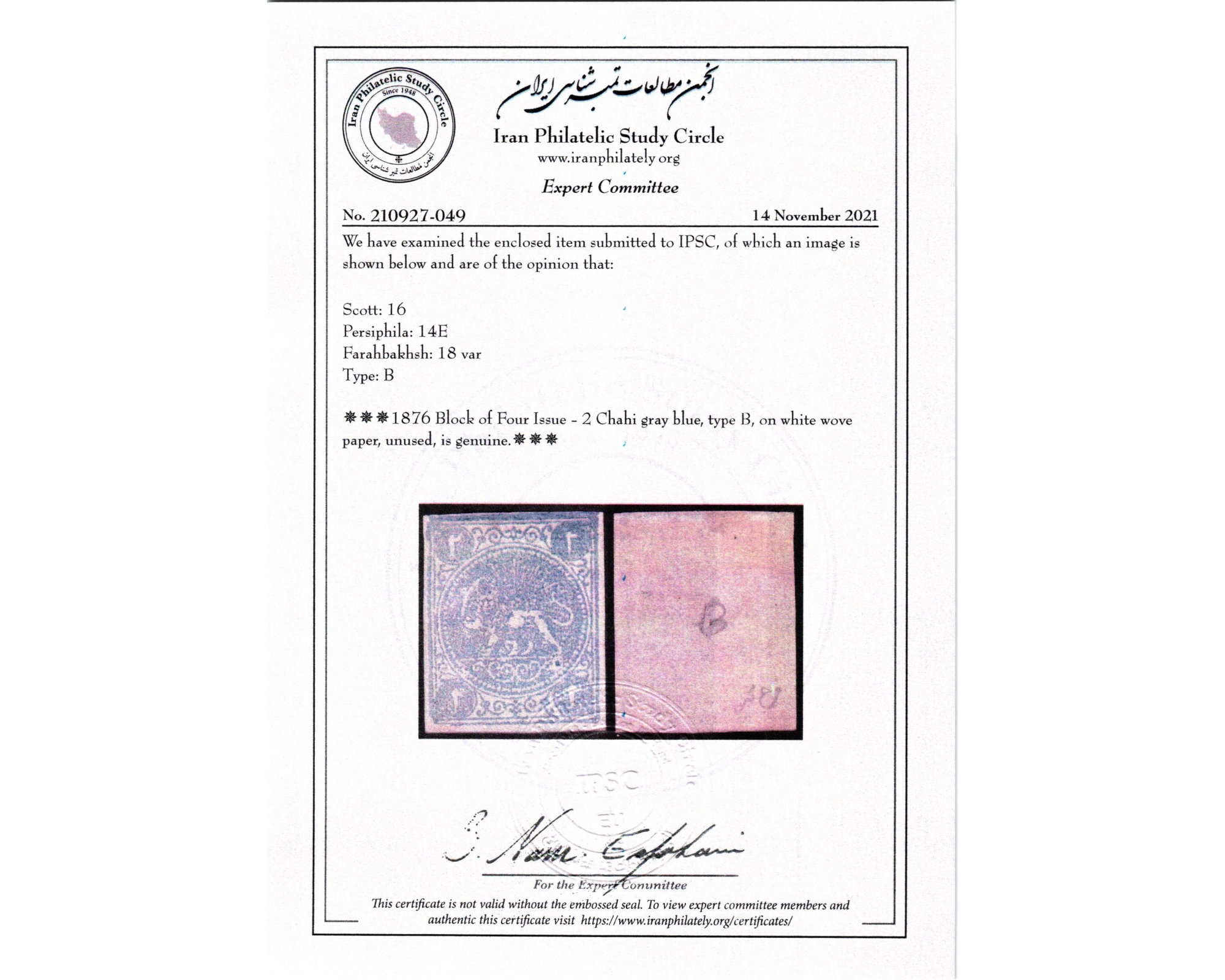 دو شاهی آبی چاپ بلوک ۴ تاییCertificate by IPSCبرای دیدن با بهترین کیفیت ماوس کامپیوتر را روی تصویر تکان دهید