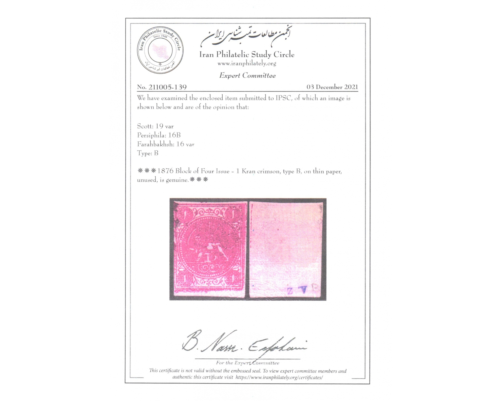 یک قران چاپ بلوك چهارتاییواریته کاغذ نازکCertificate by IPSCبرای دیدن با بهترین کیفیت ماوس کامپیوتر را روی تصویر تکان دهید