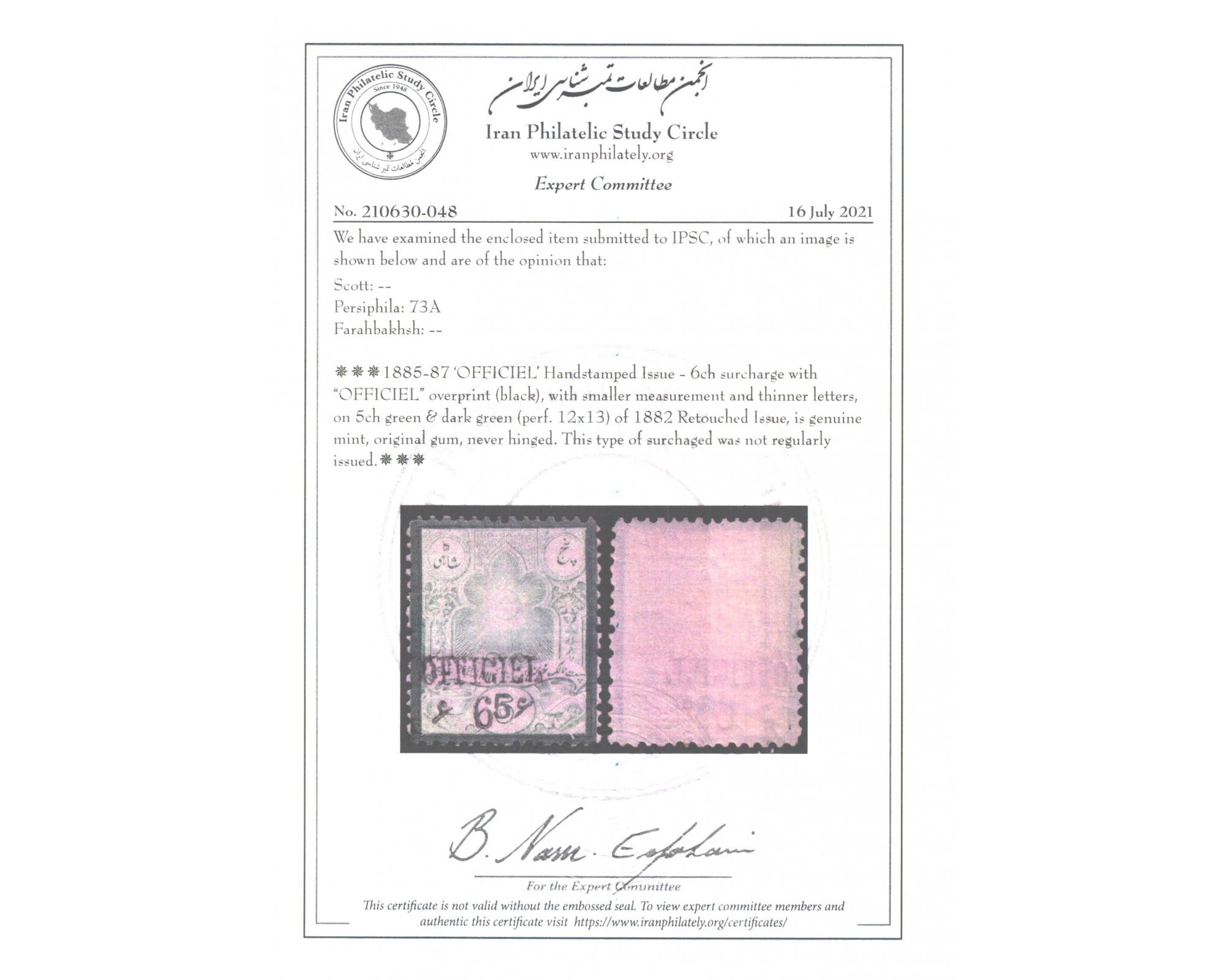 OFFICIAL شش شاهی باروچا به منتشر نشدهCertificated By IPSCCondition; Mint Never Hinged با چسب اورجینال و بدون اثر شارژ نیهبرای دیدن با بهترین کیفیت ماوس کامپیوتر را روی تصویر تکان دهید