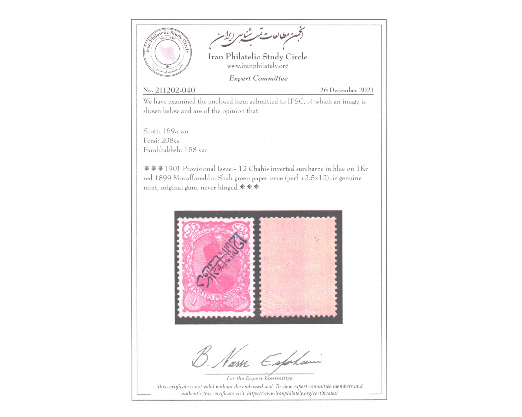 تغییر قیمت۱۲ شاهی سورشارژ وارو روی یک قرانCertificated By IPSCCondition; Mint Never Hinged با چسب اورجینال و بدون اثر شارژ نیهبرای دیدن با بهترین کیفیت ماوس کامپیوتر را روی تصویر تکان دهید