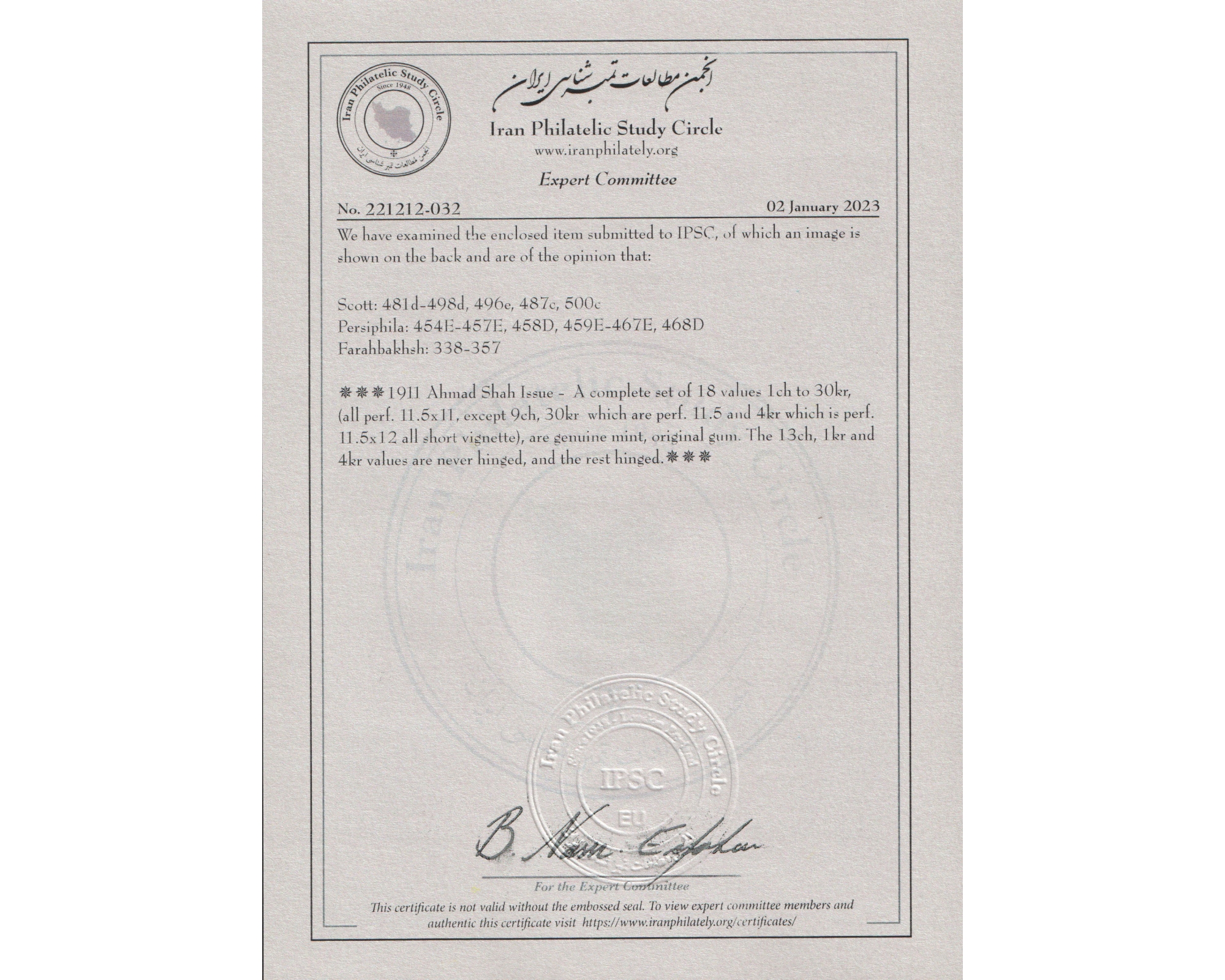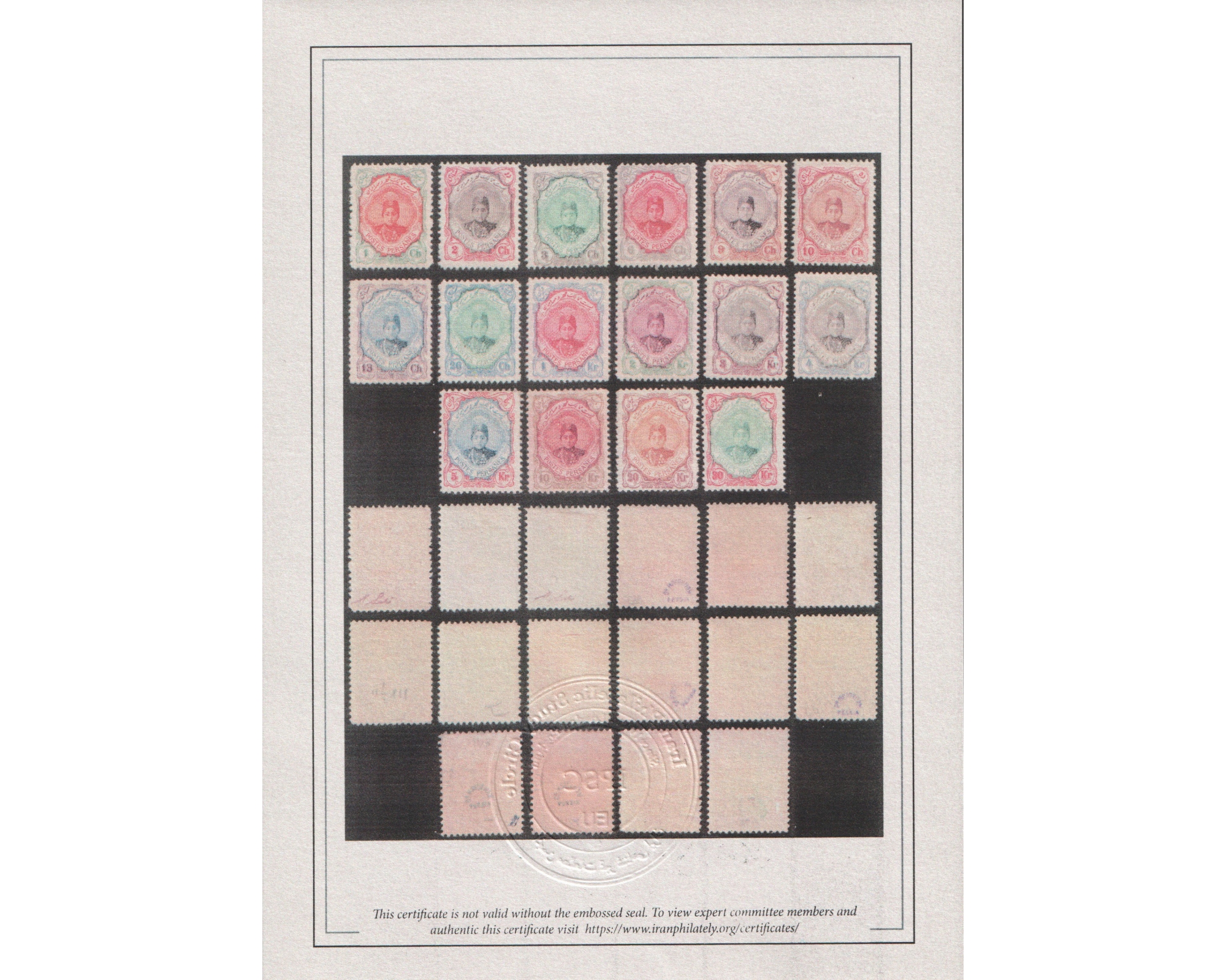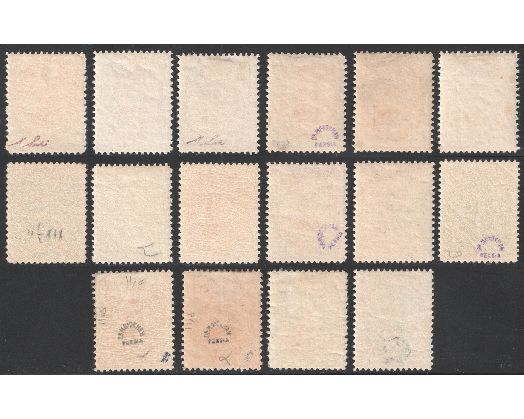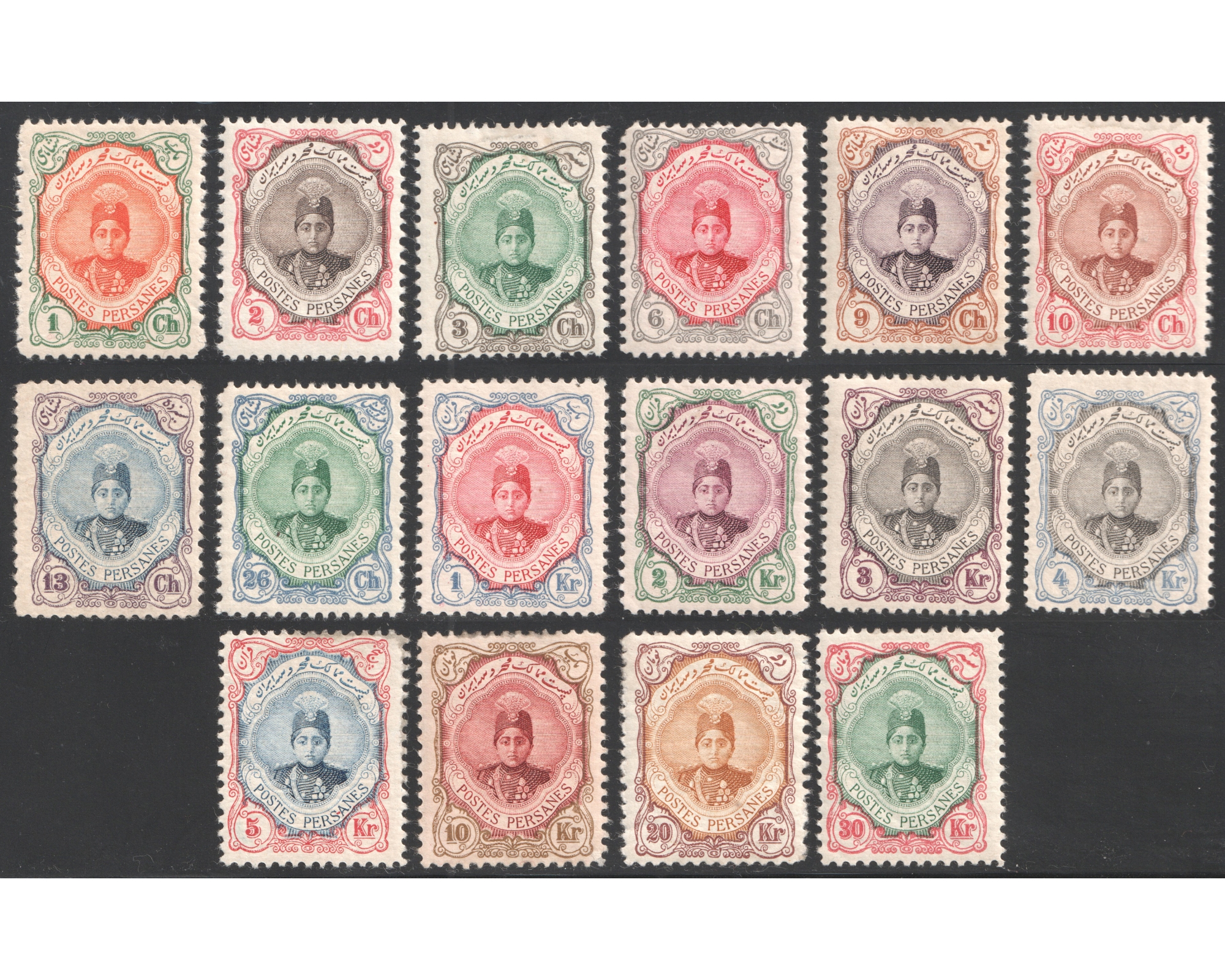 سری احمدی کوچک صورت تپل Mint Light Trace of Hinge 13ch, 1Kr and 4 Kran Never Hinged با اثر بسیار ضعیف شارنیه رقمهای ۱۳ شاهی ۱ قران و ۴ قران بدونه اثر شارنیه ـ کیفیت چسب عالی