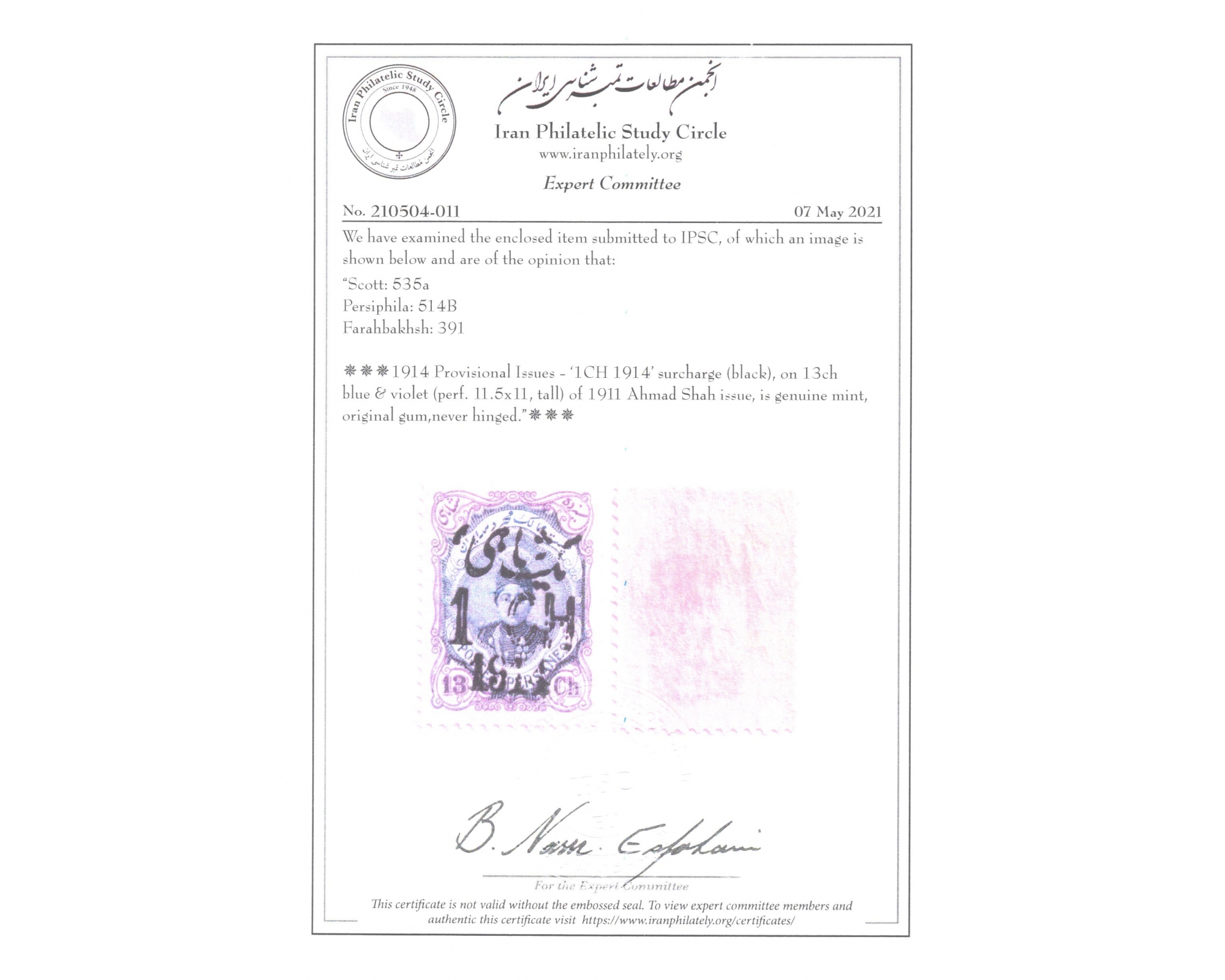 تغییر قیمت تمبرهای احمدی Mint Never Hinged بدونه اثر شارنیه ـ کیفیت چسب عالی