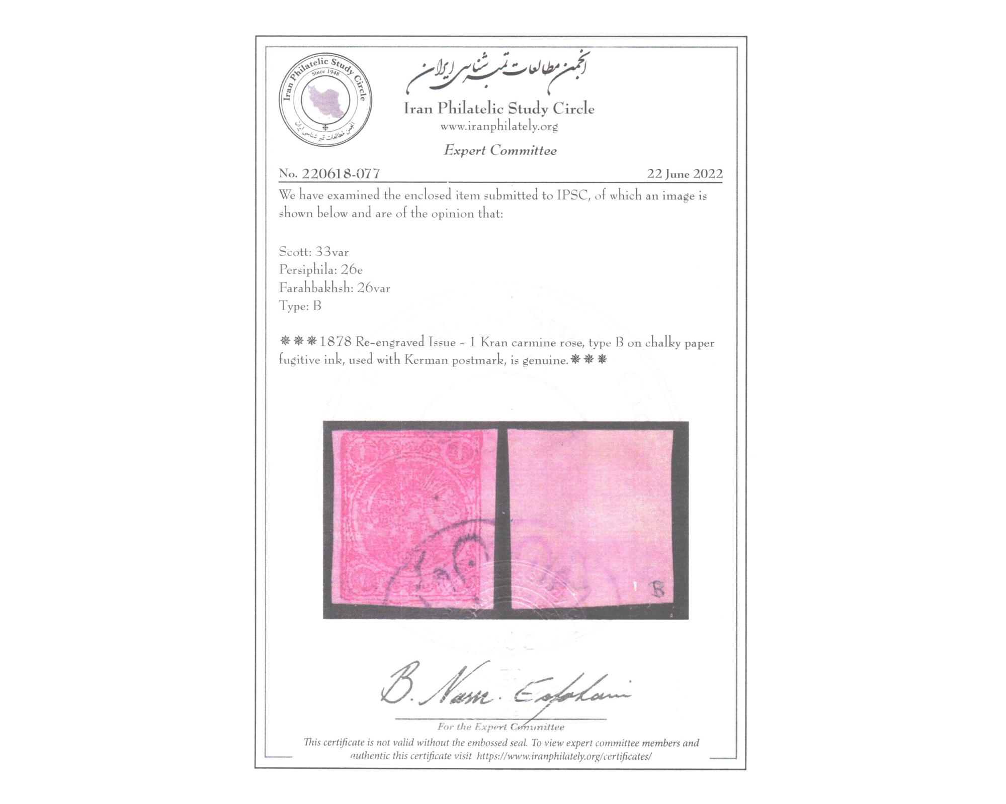 یک قرانی قرمز کاغذ سفیدجوهر فرّار روی کاغذ ضخیمCertificate by IPSCبرای دیدن با بهترین کیفیت ماوس کامپیوتر را روی تصویر تکان دهید