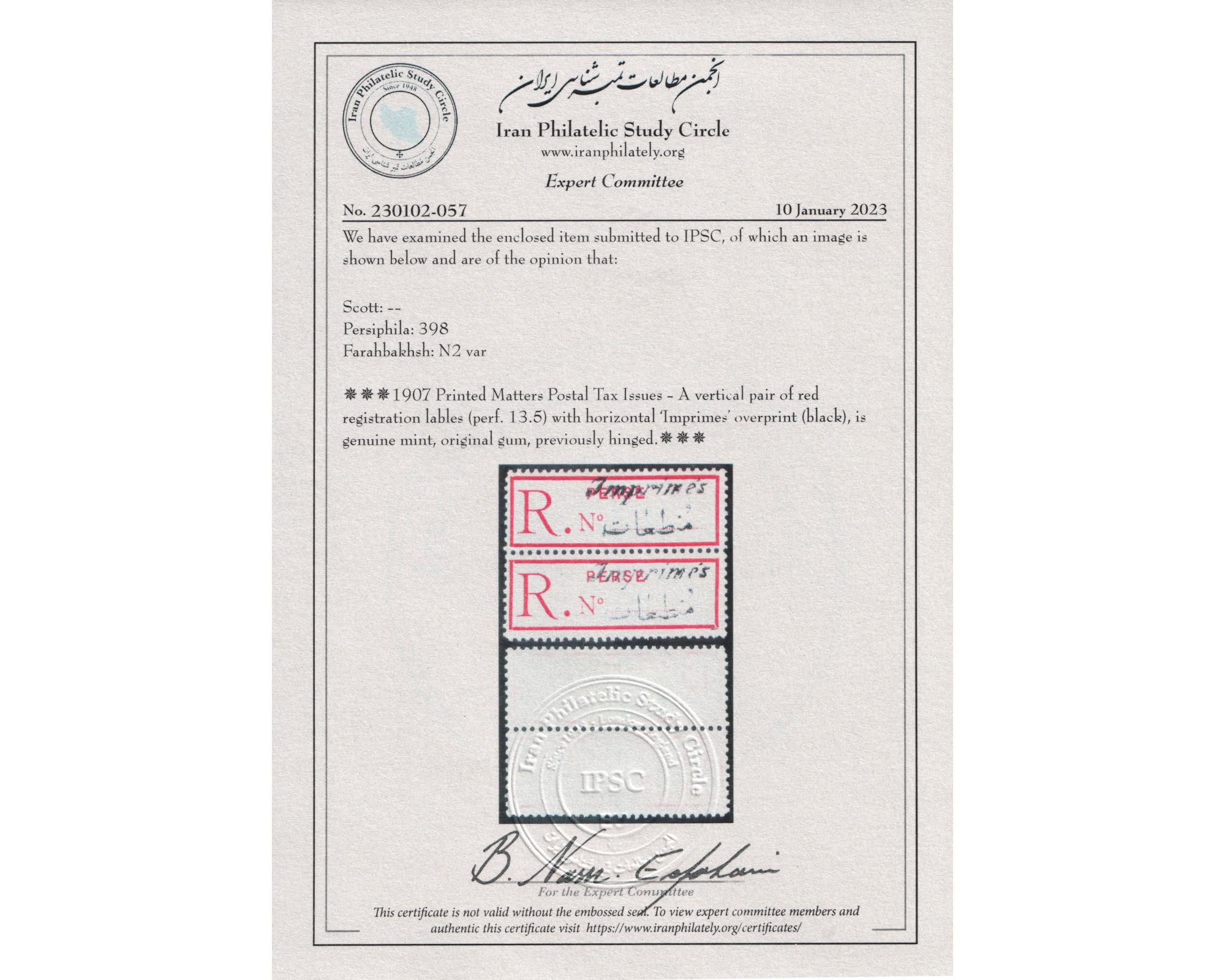 Certificated By IPSCCondition; Mint Lightly Hinged کیفیت :با اثر ضعیف شارنیهبرای دیدن با بهترین کیفیت ماوس کامپیوتر را روی تصویر تکان دهید