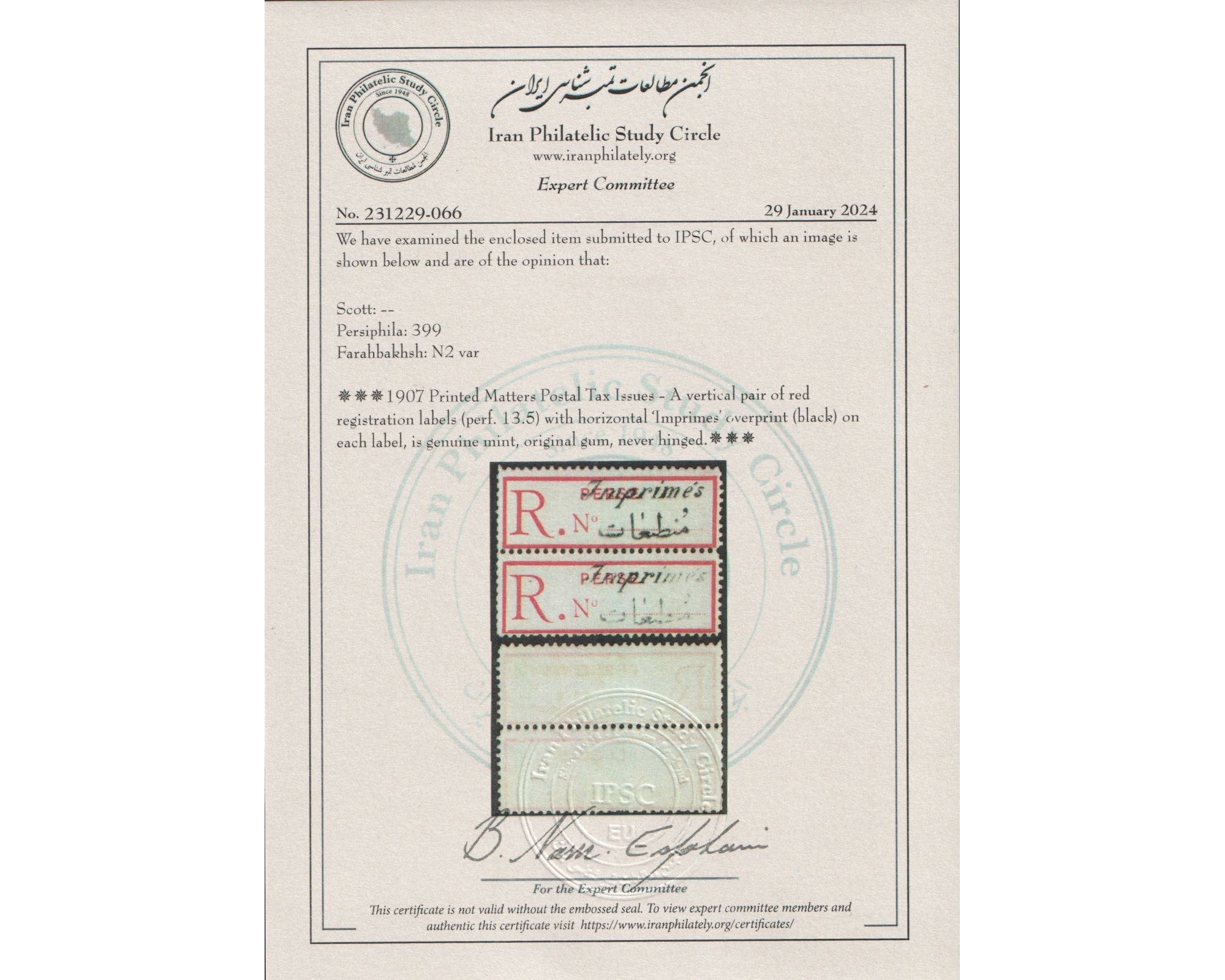 Certificated By IPSCCondition; Mint Never Hingedبا کیفیت عالی بدون اثر شارنیهبرای دیدن با بهترین کیفیت ماوس کامپیوتر را روی تصویر تکان دهید