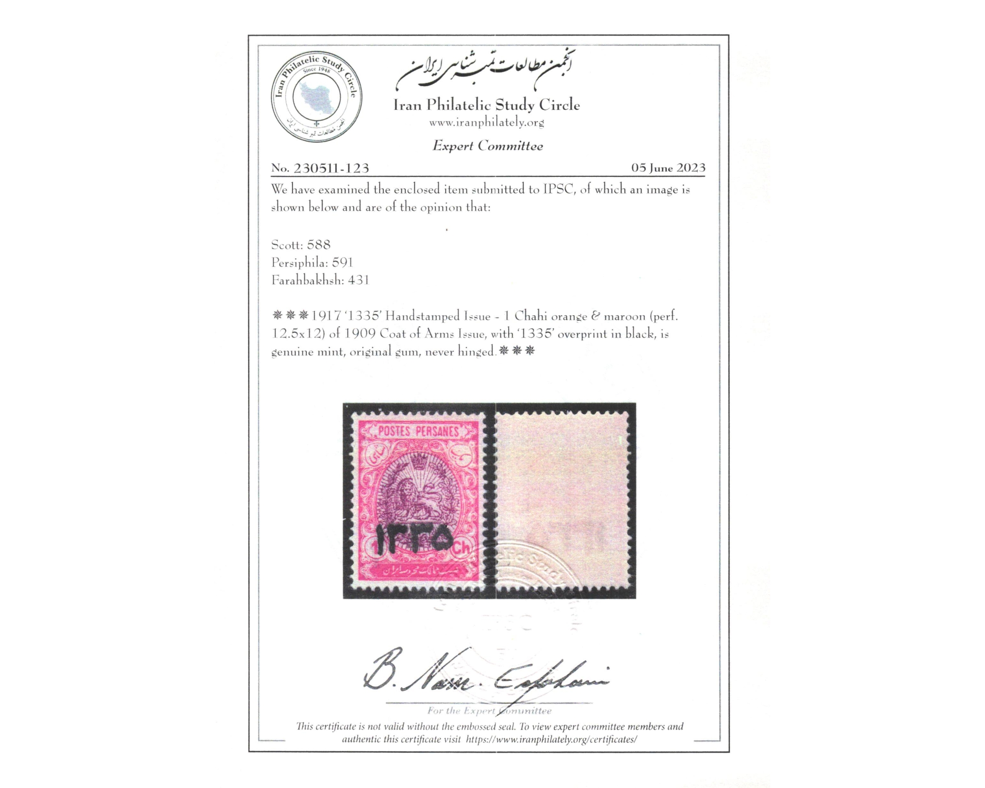 سورشارژ ۱۳۳۵ روی تمبرهای مشروطه Certificate By IPSCCondition; Mint Never Hinged کیفیت; بدون اثر شارنیهبرای دیدن با بهترین کیفیت ماوس کامپیوتر را روی تصویر تکان دهید