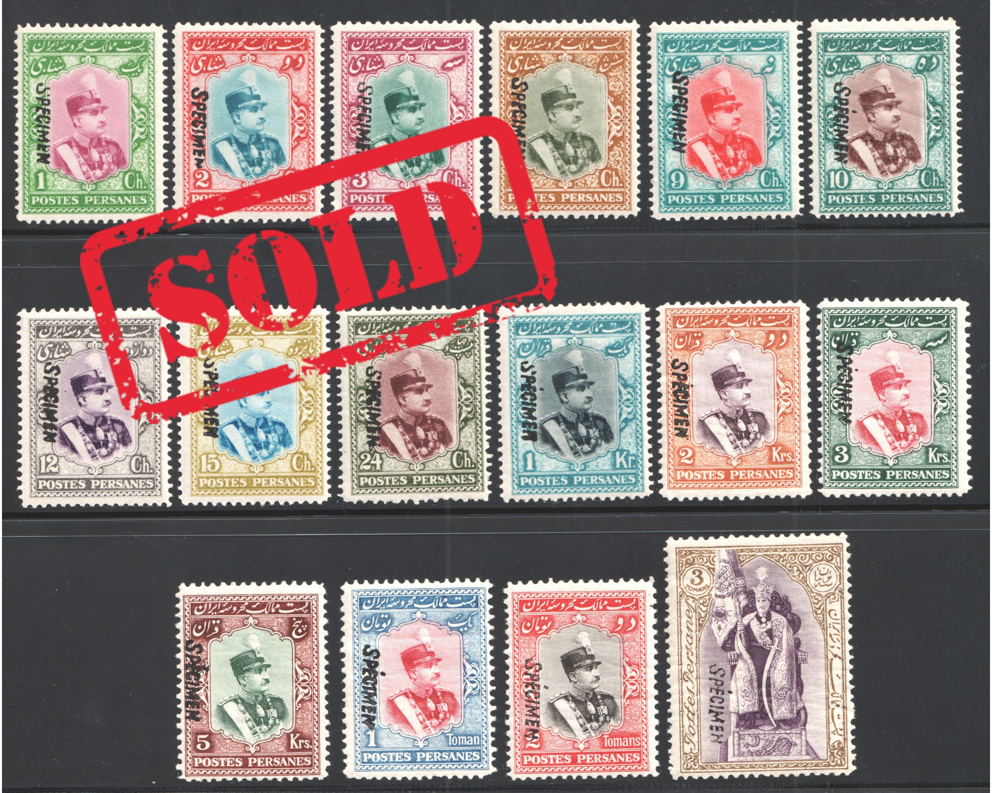سری نمونه تاجگذاری رضا شاه پهلوی Condition; Mint Very Lightly Hingedبا اثر بسیار ضعیف شارنیه