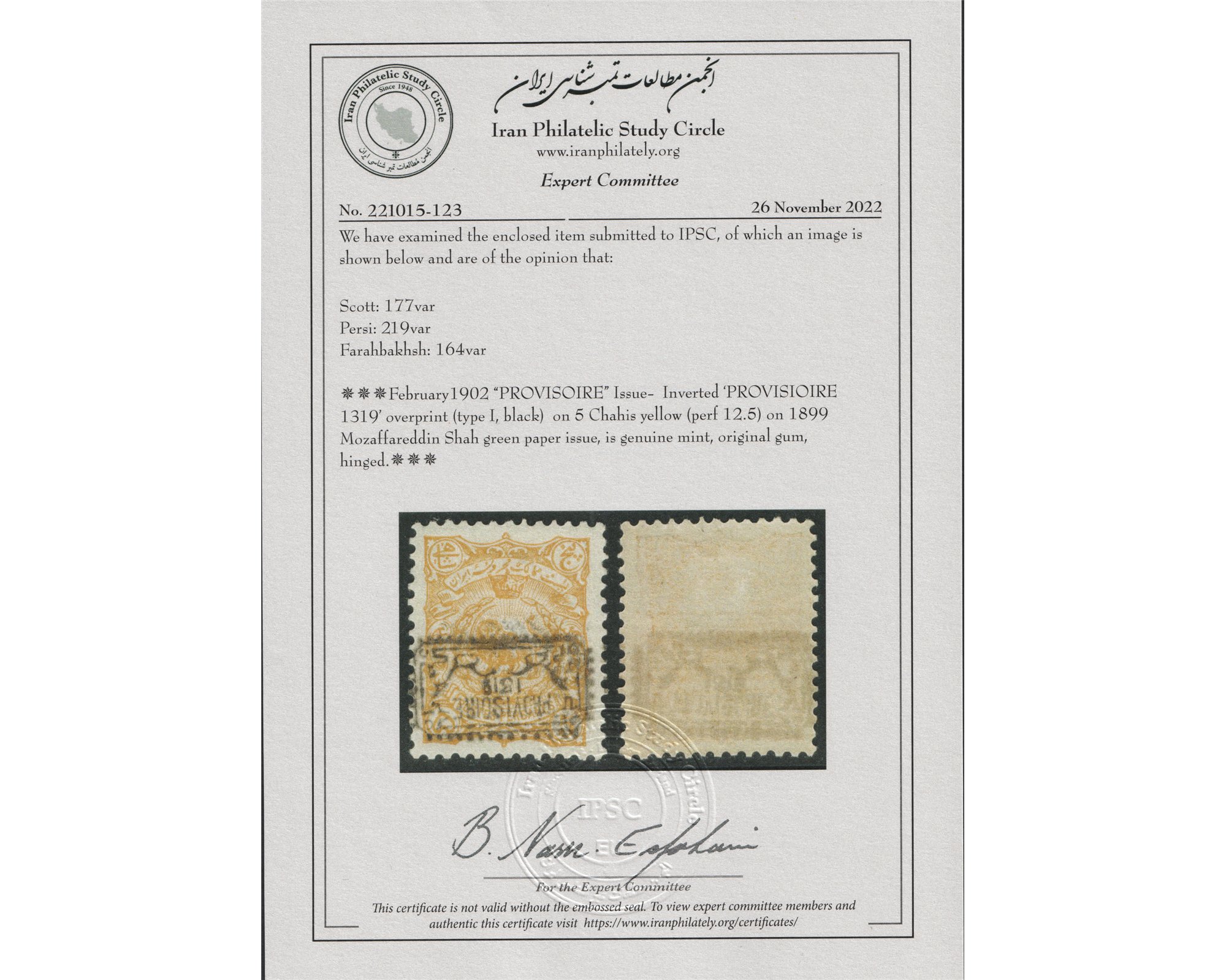 1902 Provisoire Issue 5 Chahi Type A Inverted Overprint