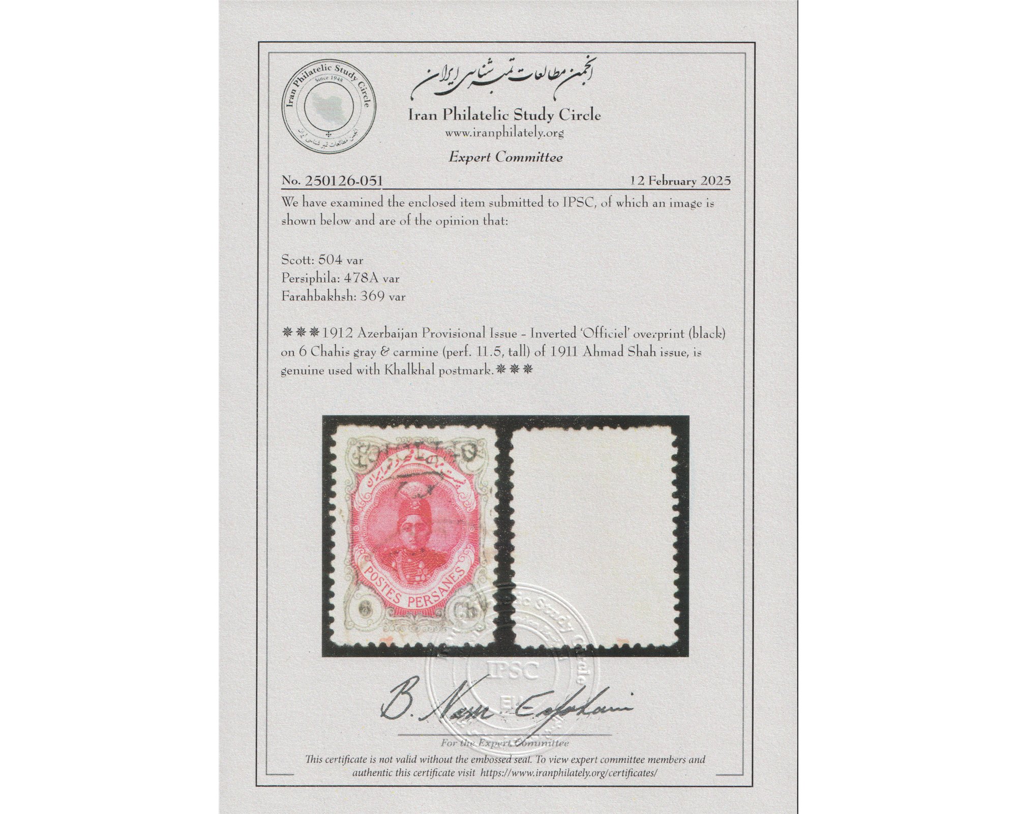IPSC شش شاهی سری رسمی با رو چاپ وارو با سرتیفیکیت Condition; Postaly Used مصرف شده در پست برای دیدن با بهترین کیفیت ماوس کامپیوتر را روی تصویر تکان دهید