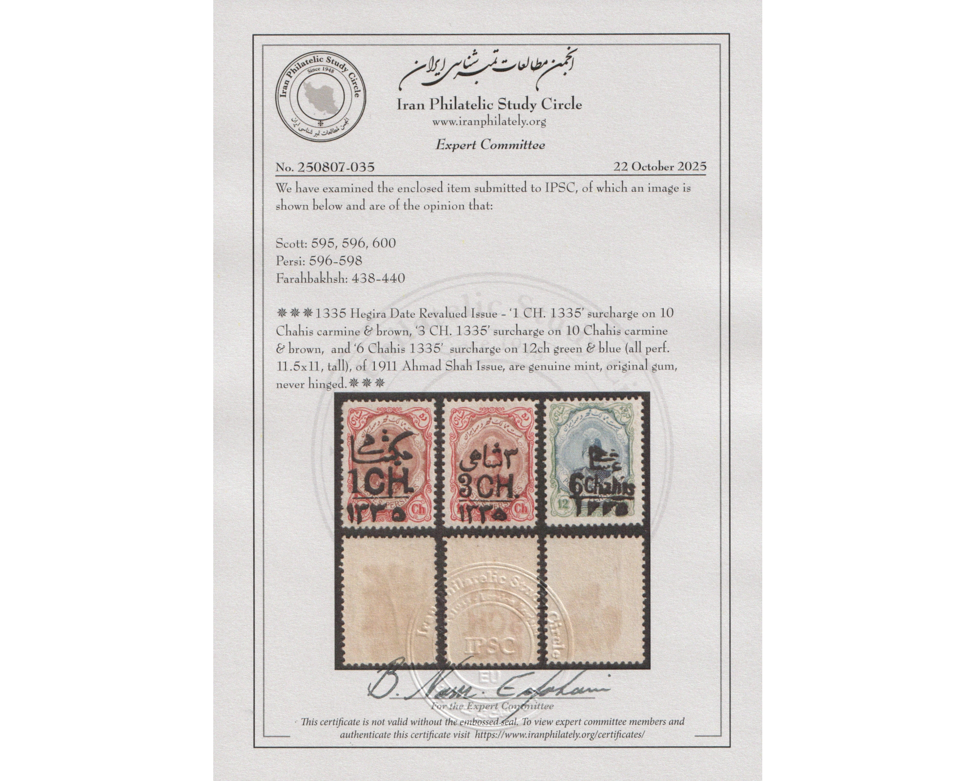 (1296 – سورشارژ 1335 روی تمبرهای احمدی ( 1917Certificate By IPSCCondition; Mint Never Hingedبدونه اثر شارنیه ـ کیفیت چسب عالیبرای دیدن با بهترین کیفیت ماوس کامپیوتر را روی تصویر تکان دهید