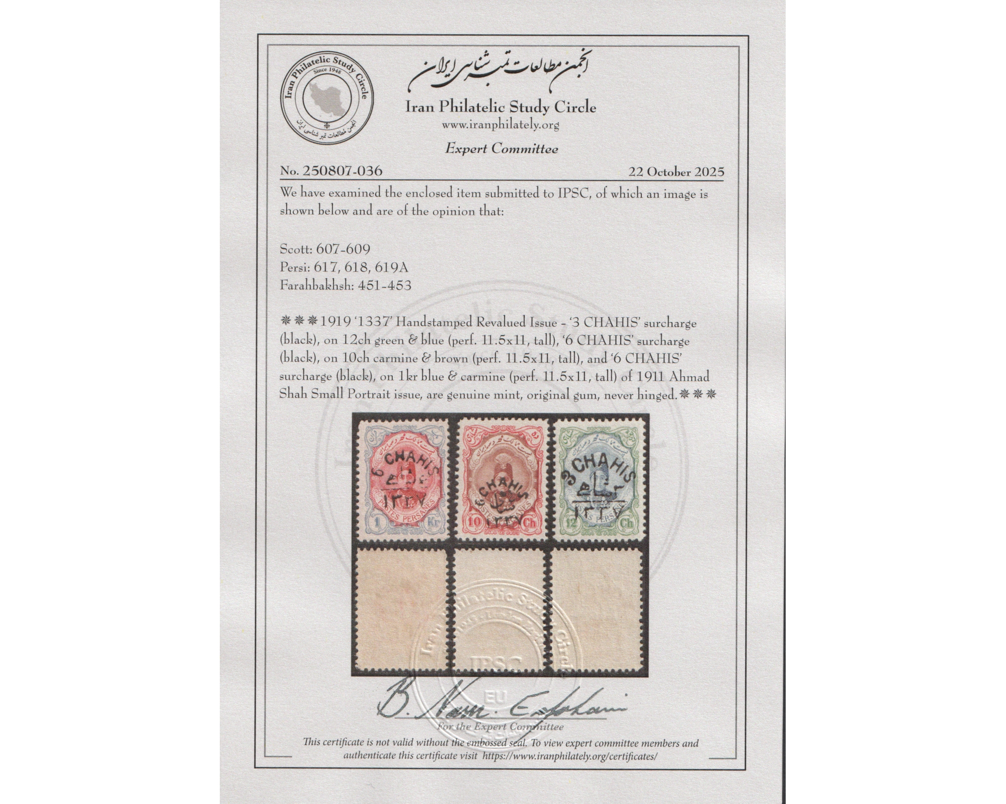 تمبرهای تغییر قیمت داده شده با تاریخ ۱۳۳۷Certificated By IPSCCondition: Mint Never Hinged بدون اثر شارنیهبرای دیدن با بهترین کیفیت ماوس کامپیوتر را روی تصویر تکان دهید