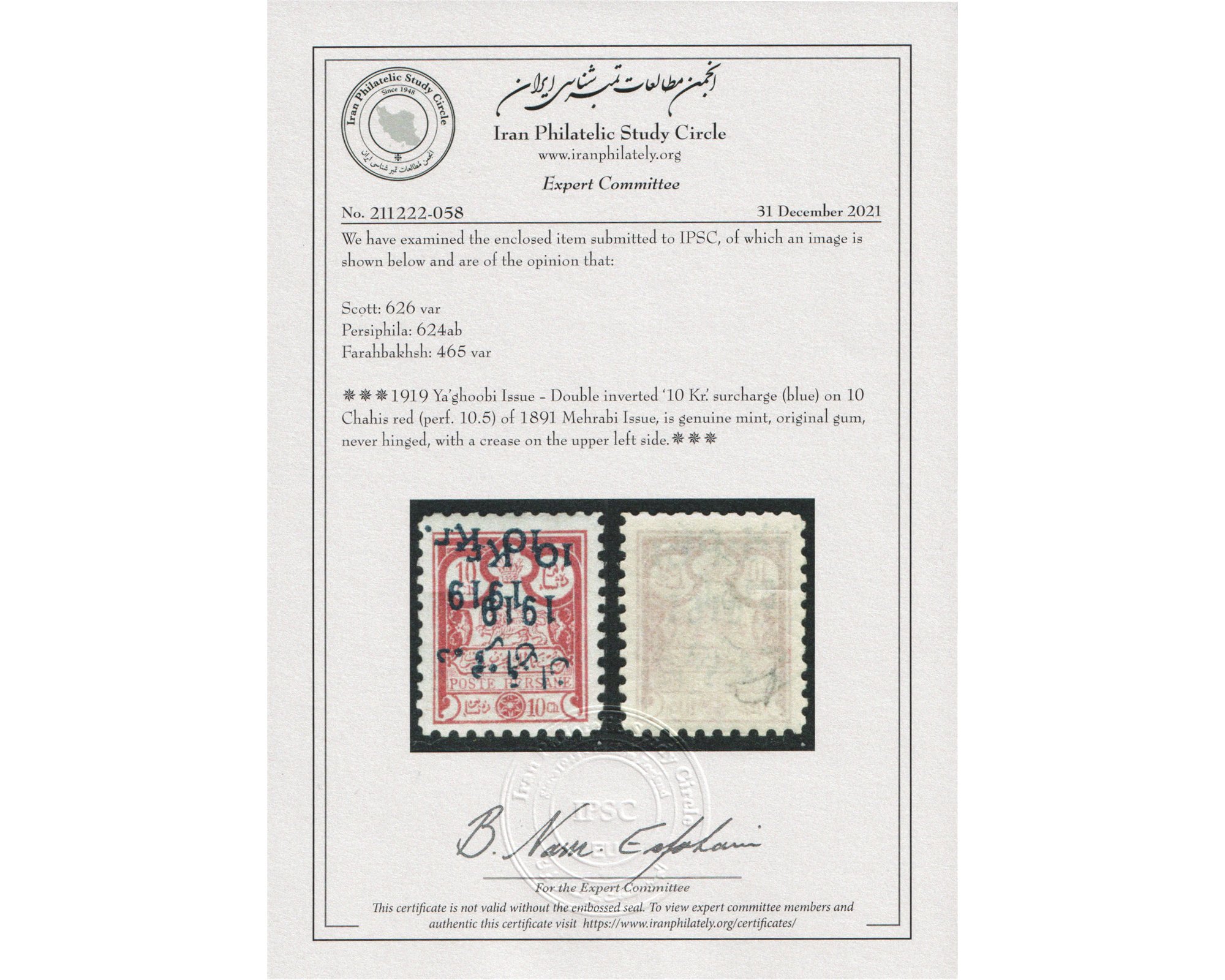 تغییر قیمت معروف به یعقوبی ده قران دوبله و واروCertificated By IPSCCondition: Mint Never Hinged بدون اثر شارنیهبرای دیدن با بهترین کیفیت ماوس کامپیوتر را روی تصویر تکان دهید