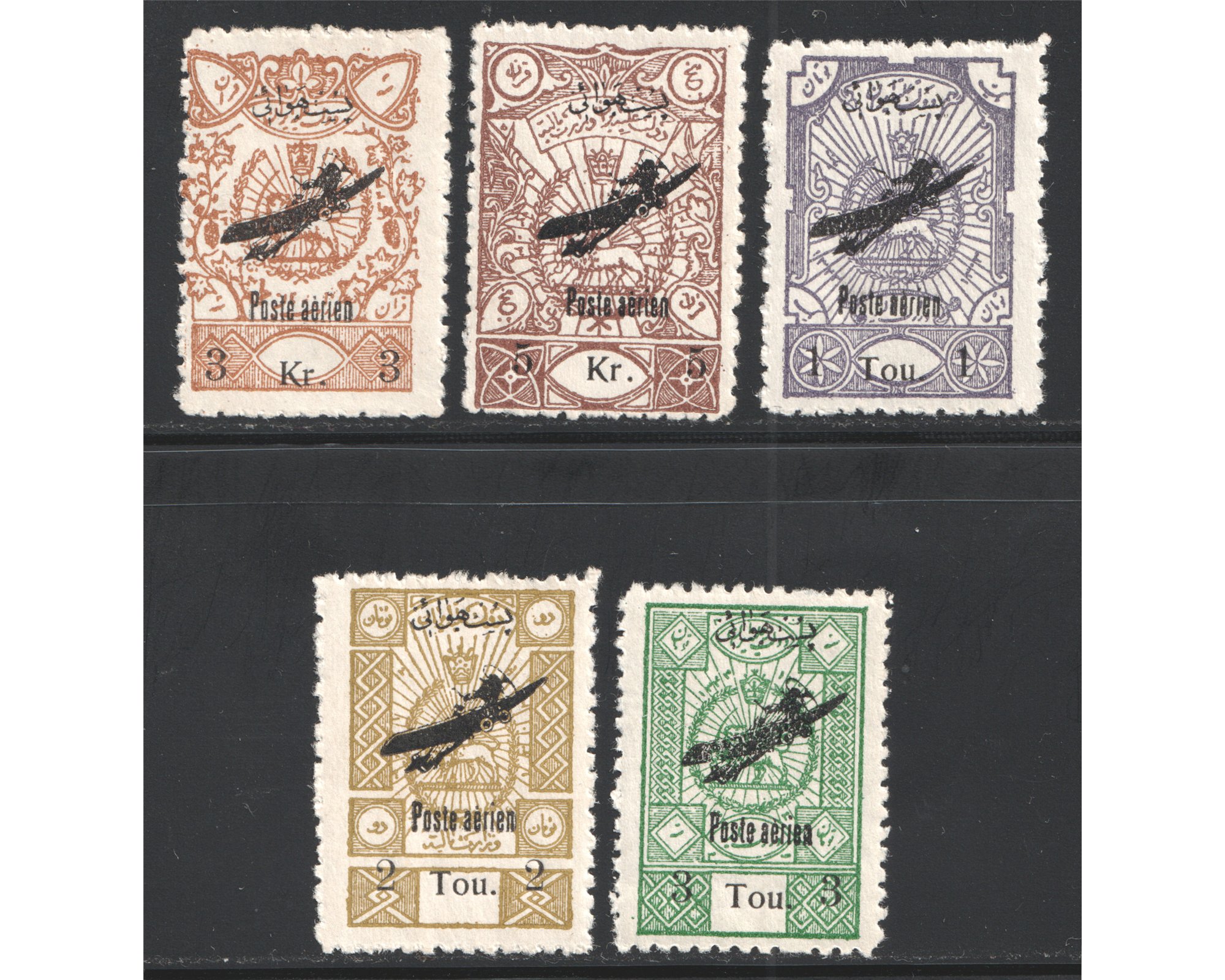 روچاپ پست هوائي با خط نسخ بر روي تمبرهاي ماليه