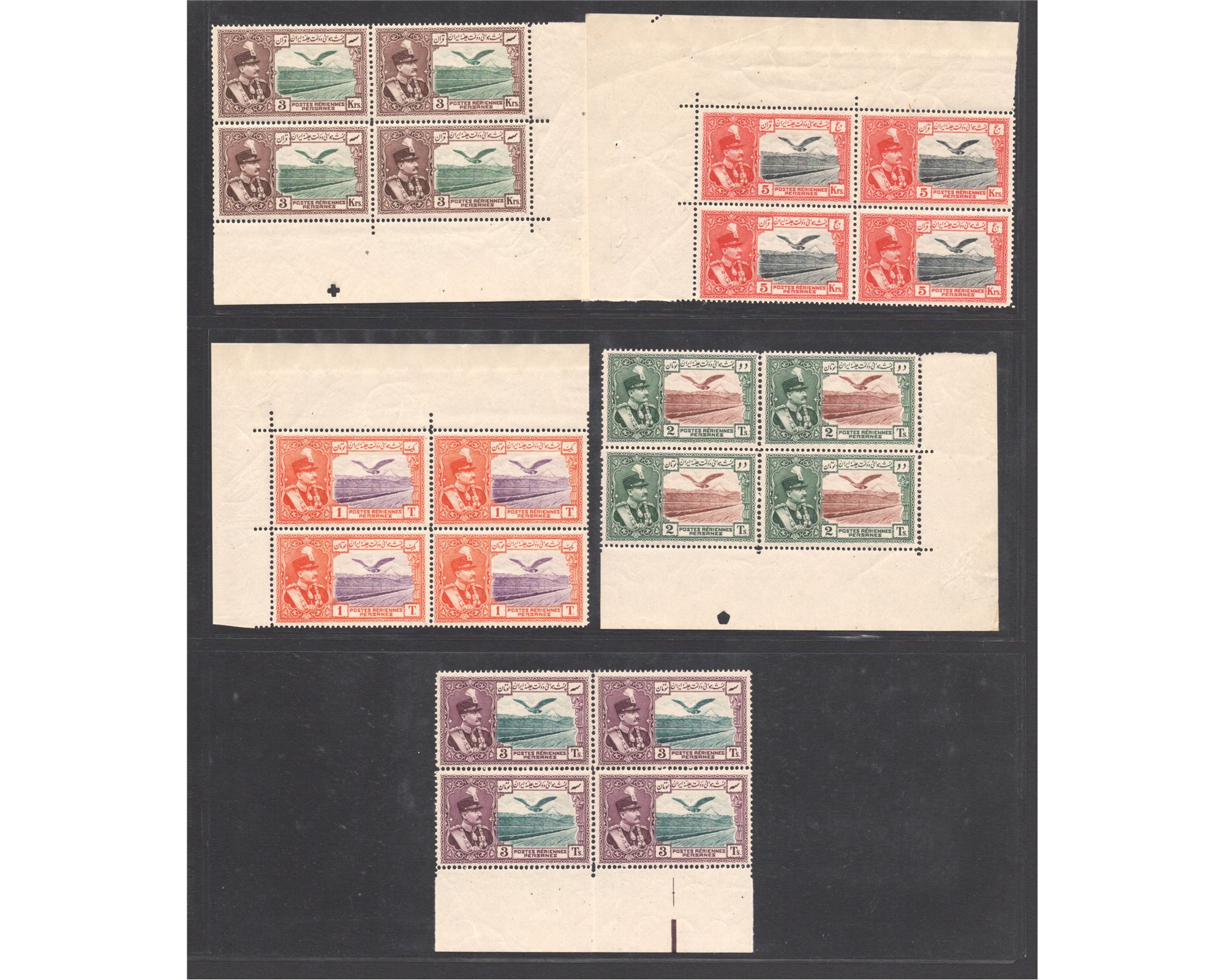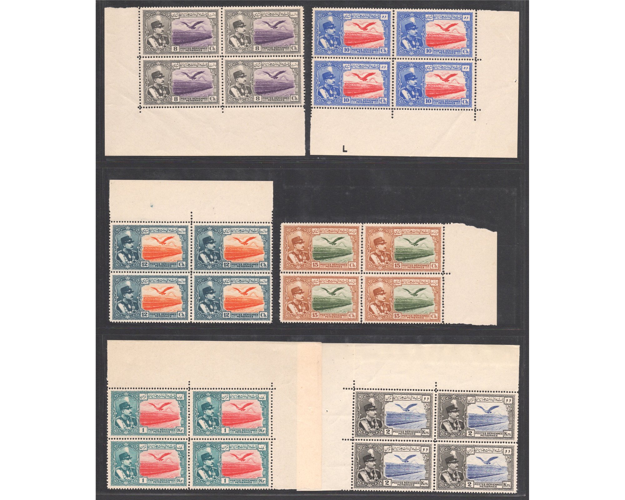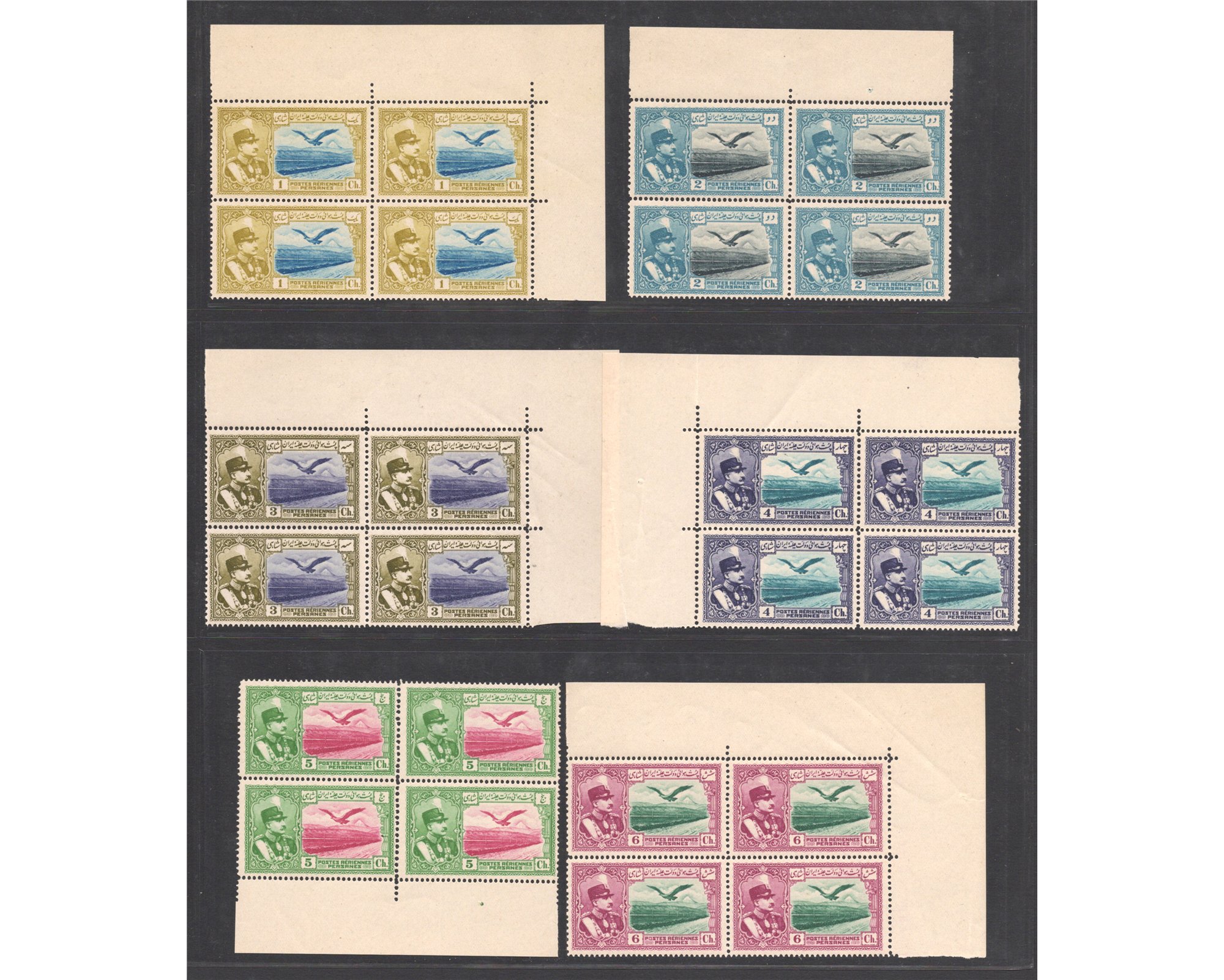 1930 سری پست هوایی عقابی1930 Airmail Issue Condition: Mint Never Hingedبدون اثر شارنیه 3 Tuman Has perforation separation between top pair