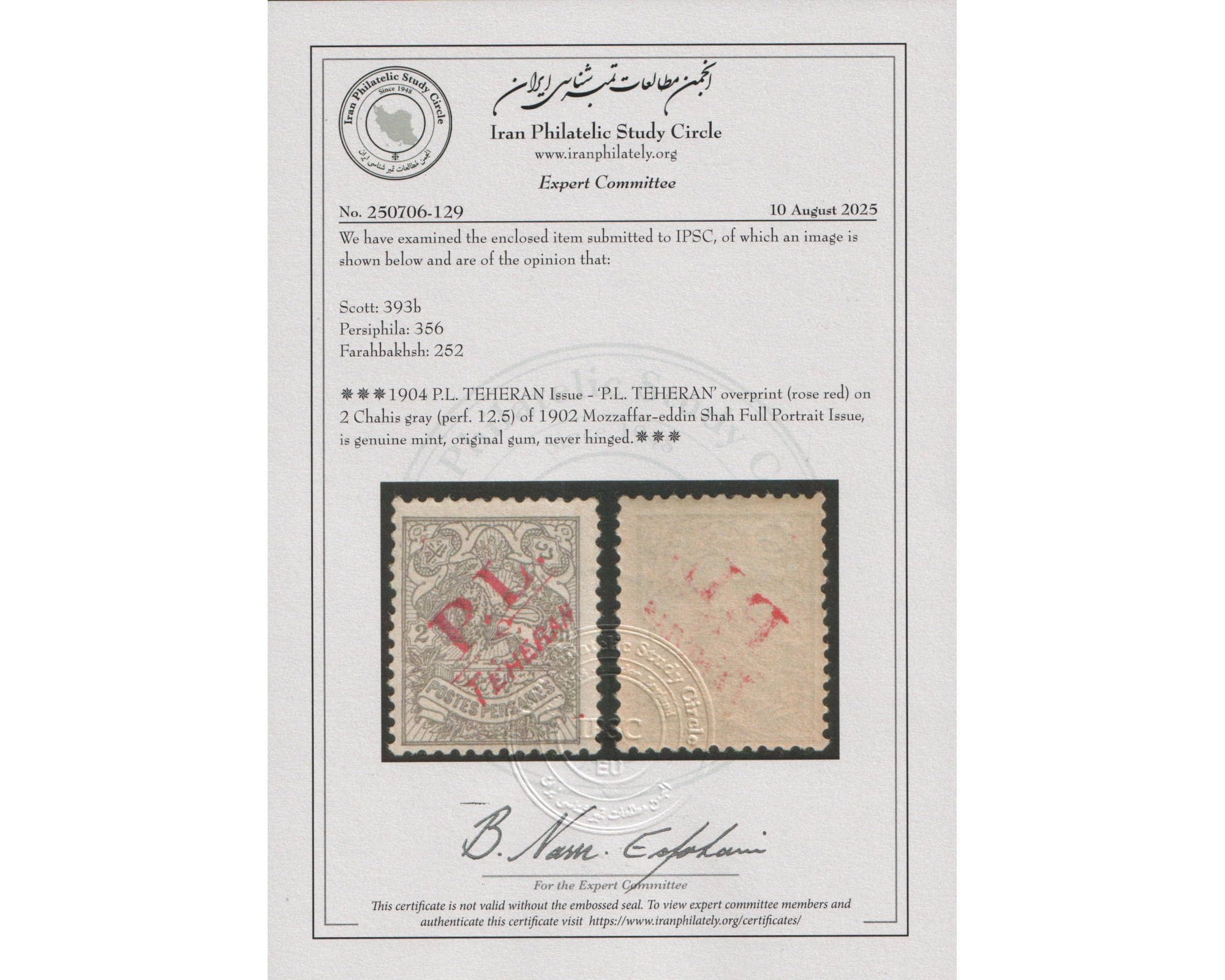 پست شهری محلی تهران با سرتیفیکیتCertificate By IPSCCondition; Mint Never Hinged با چسب اورجینال و بدون اثر شارژ نیهبرای دیدن با بهترین کیفیت ماوس کامپیوتر را روی تصویر تکان دهید