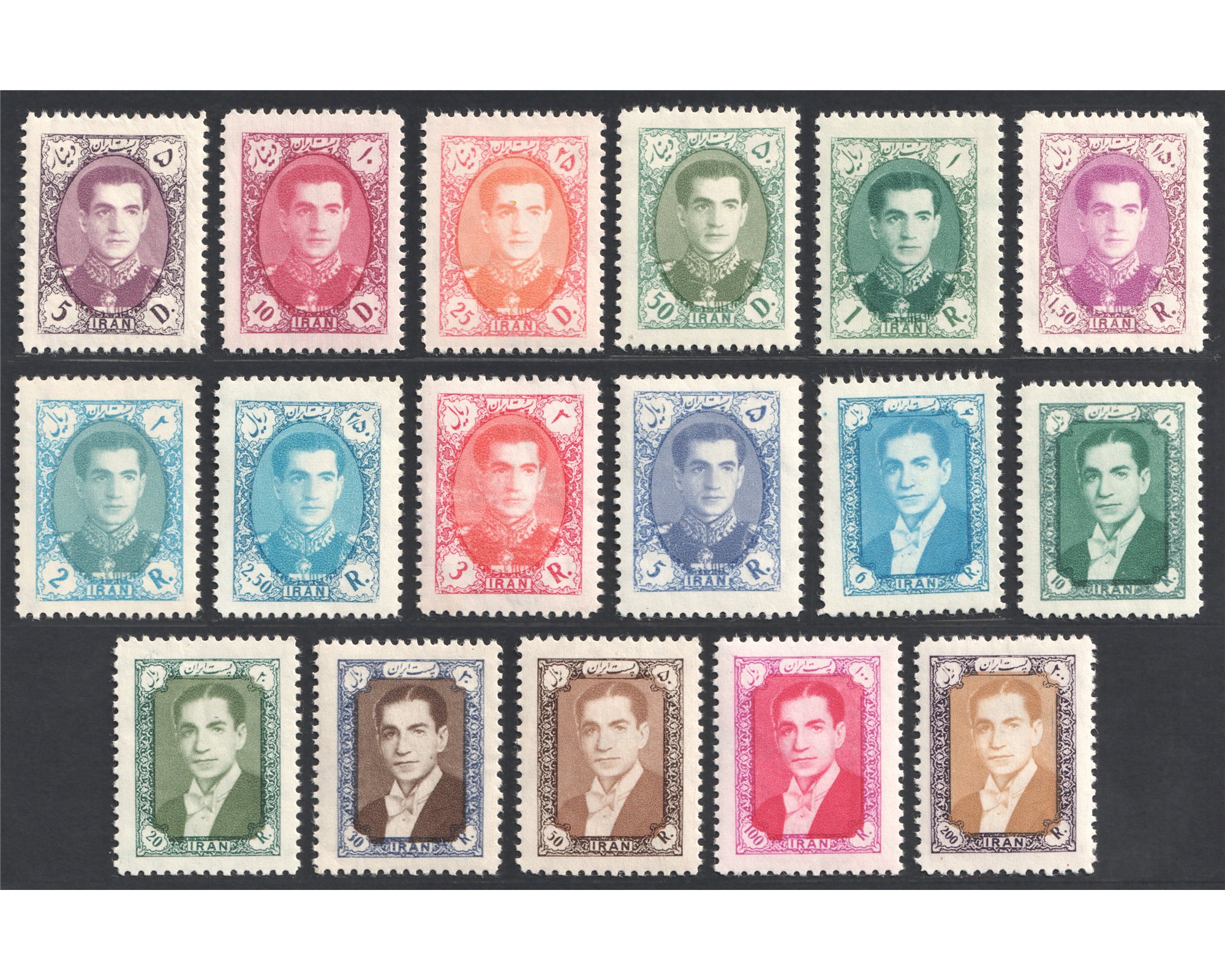 1957 Mohammad Reza Shah Pahlavi 8th Definitive Issue سال ۱۳۳۶ محمد رضا شاه پهلوی سری هشتم پستی Condition : Mint Never Hinged بدون اثر شار نیه و با کیفیت بسیار عالی