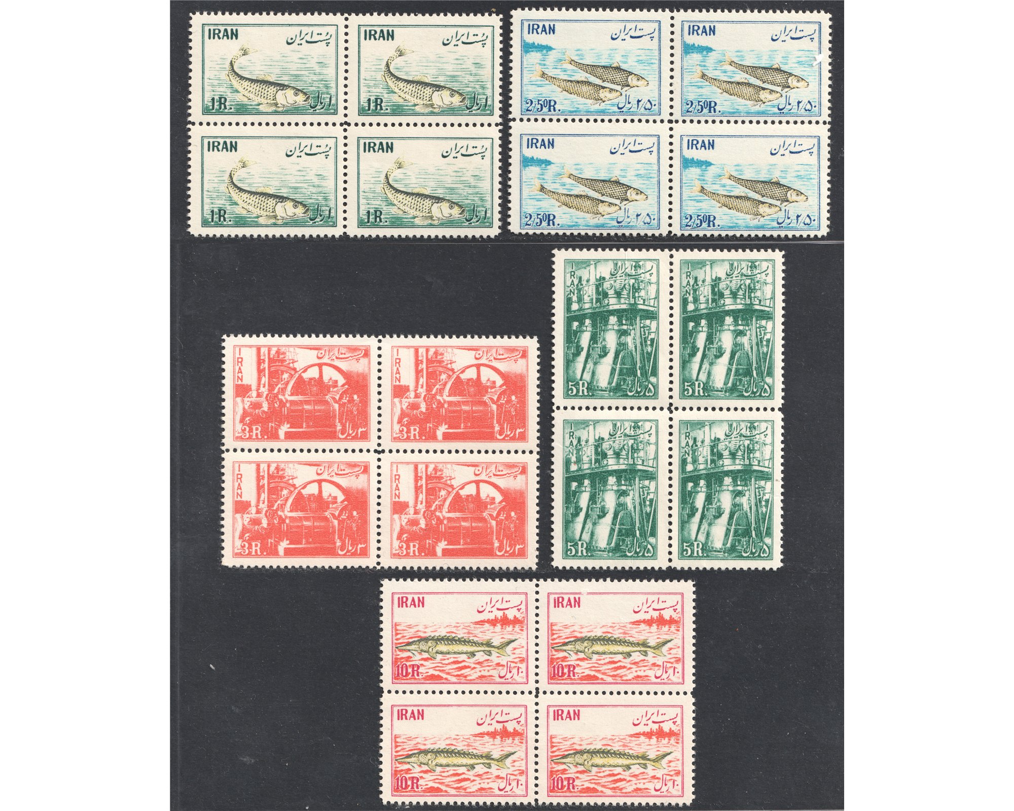 1954 Nationalization of Fishing Industry ملی شدن صنایع شیلات در ایران بلوک چهارتاییCondition : Mint Never Hinged بدون اثر شارنیه