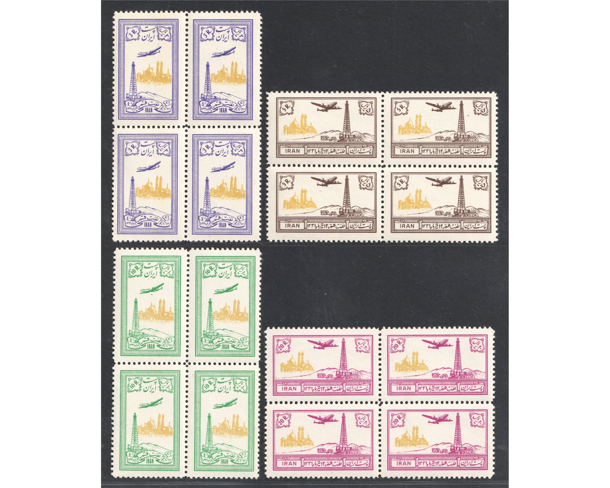 Discovery of Oil at Qum Airmail Blocks پست هوایی چاه شماره ۳ البرز در قم بلوک چهارتاییCondition : Mint Never Hinged بدون اثر شارنیه