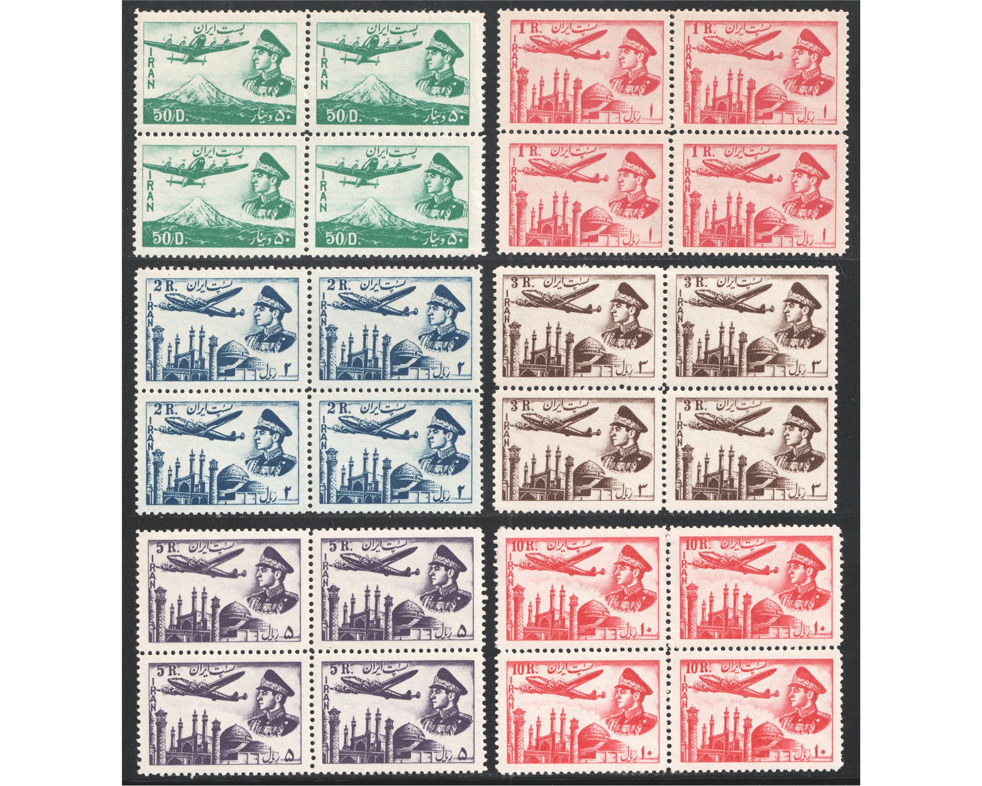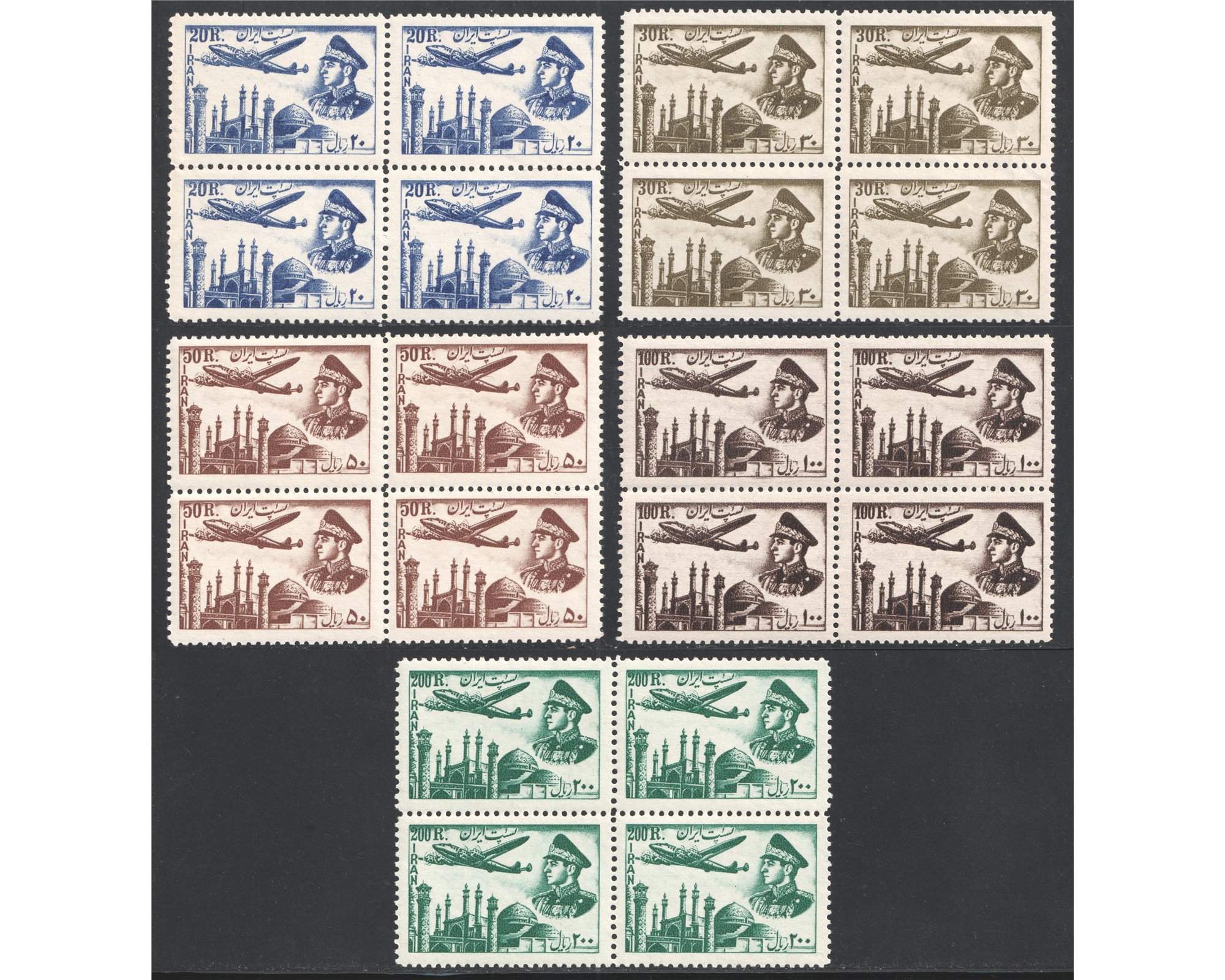1953 First Airmail Issue Block of 4 محمدرضا شاه پهلوی اولین پست هوایی بلوک چهارتاییCondition : Mint Never Hinged بدون اثر شارنیه