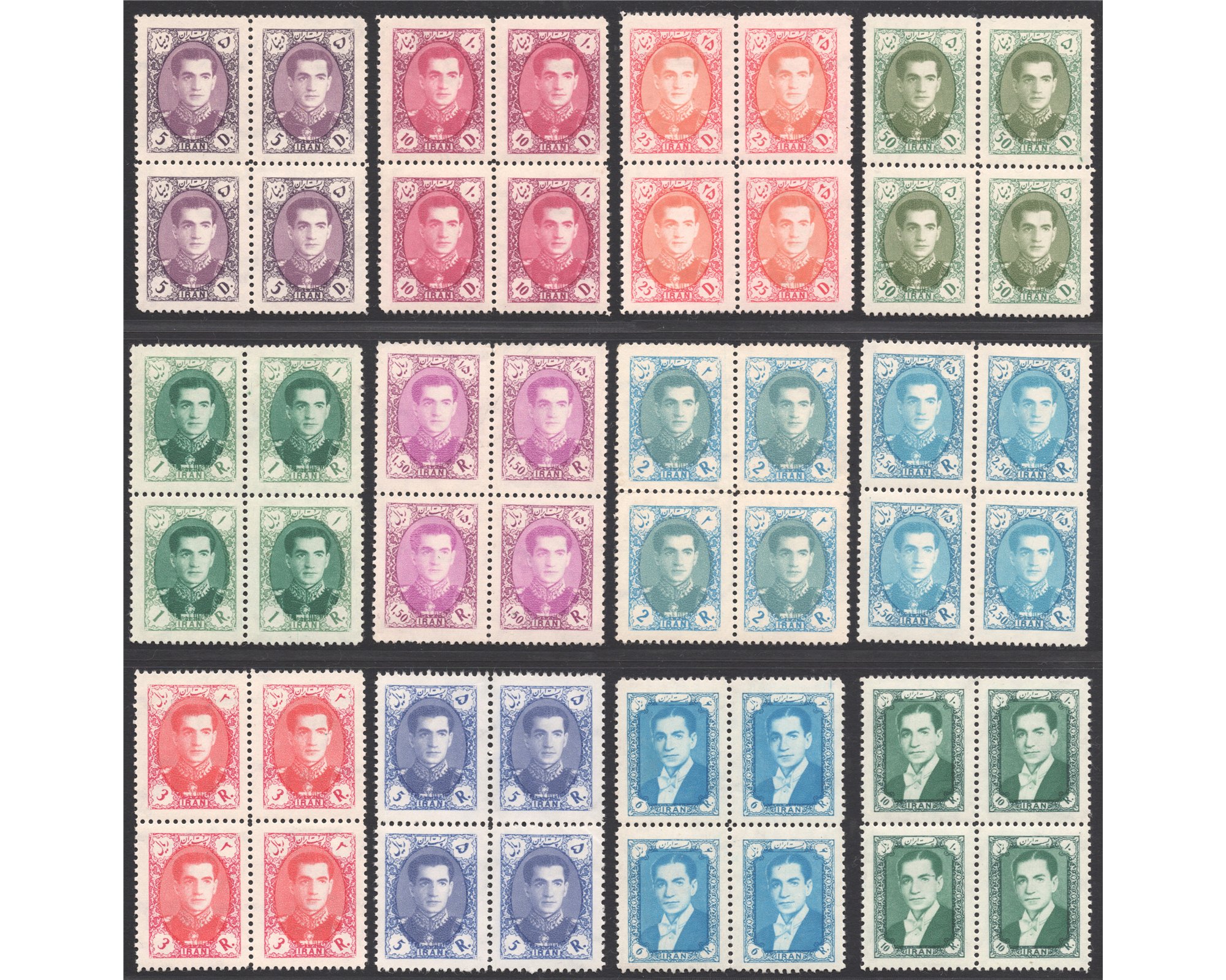 محمدرضا شاه پهلوی هشتمین سری پستی بلوک چهارتایی