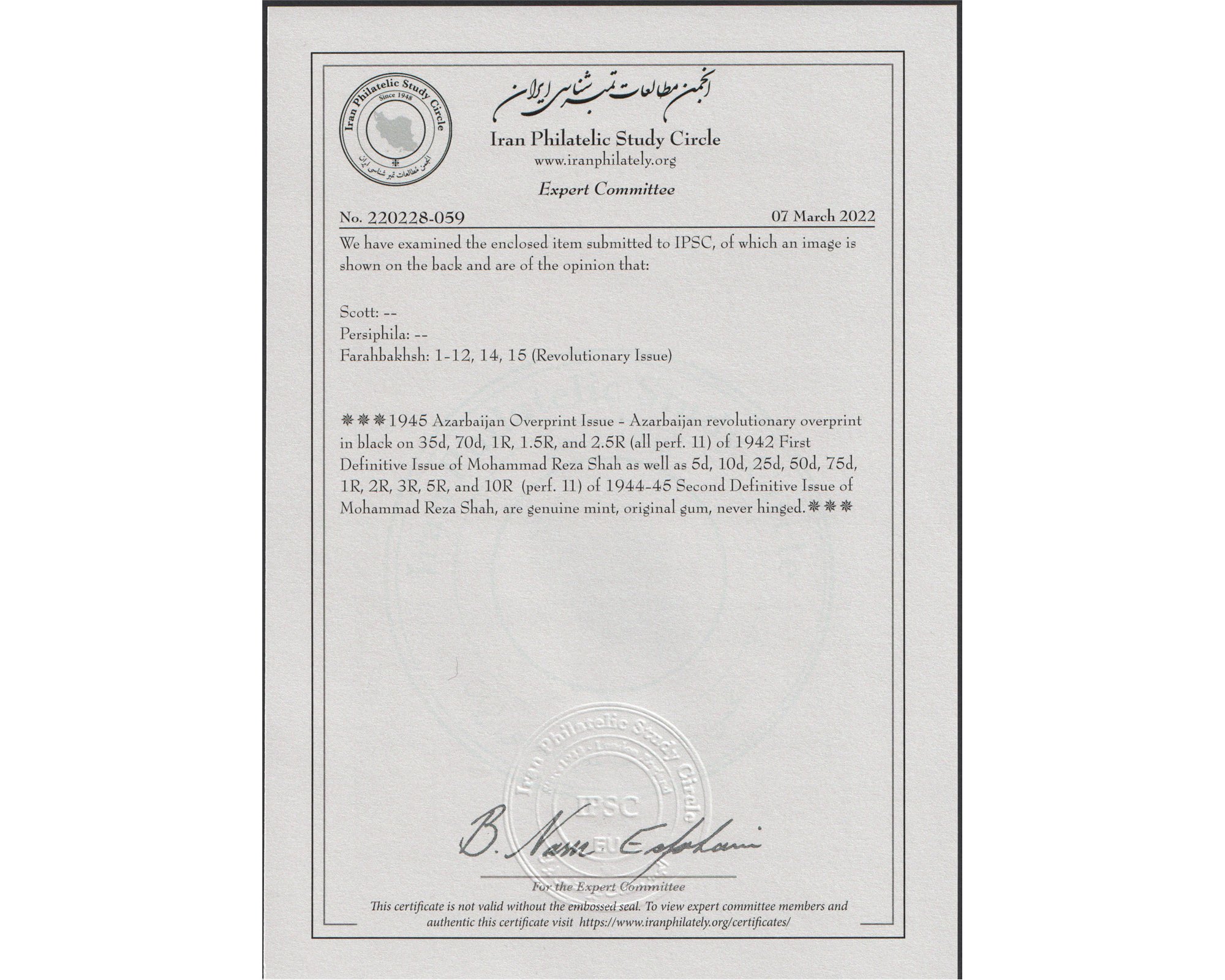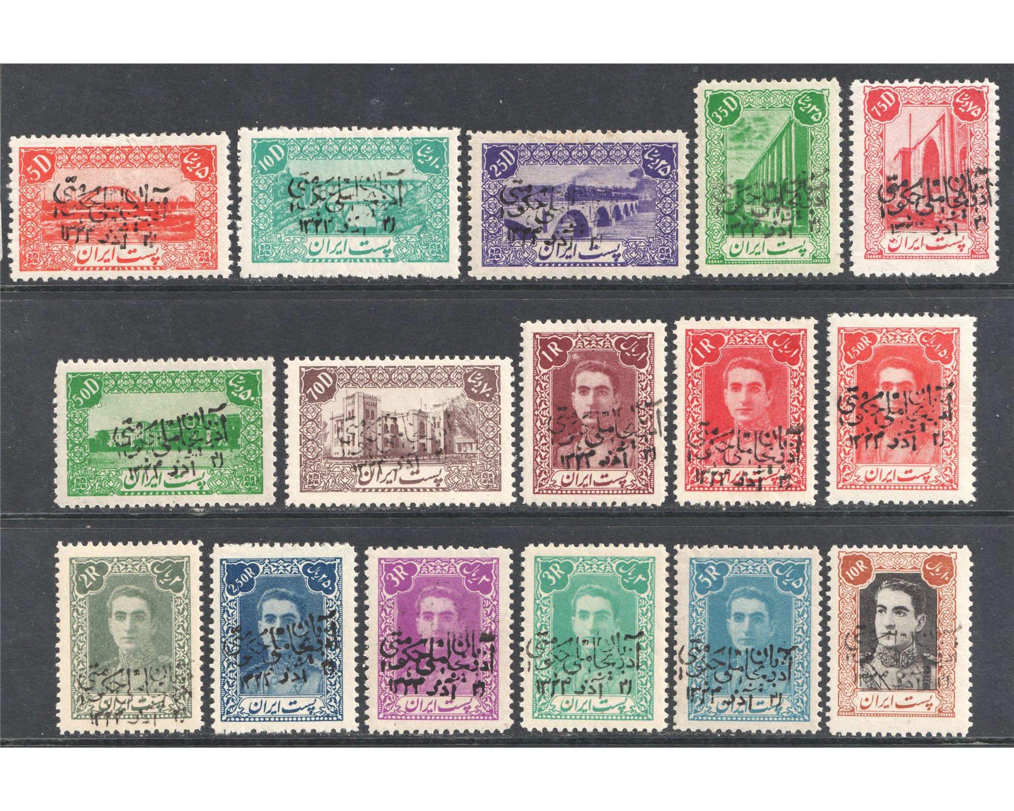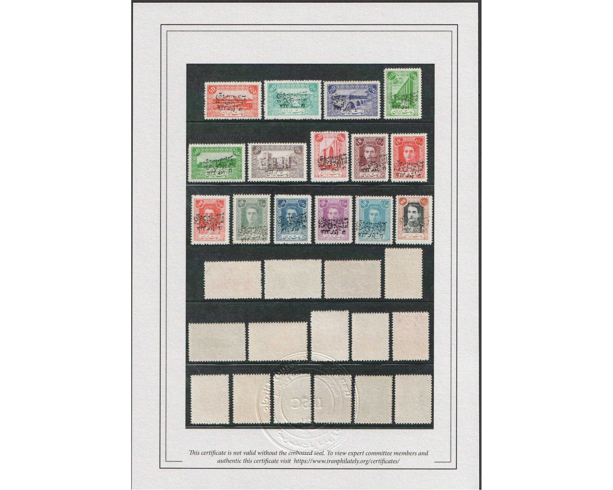 Azerbaijan Soviet Separatists Puppet Government issue سال ۱۳۳۳ سورشارژ حکومت ملی آذربایجان Certificate By IPSC Condition : Mint Never Hinged بدون اثر شارنیه
