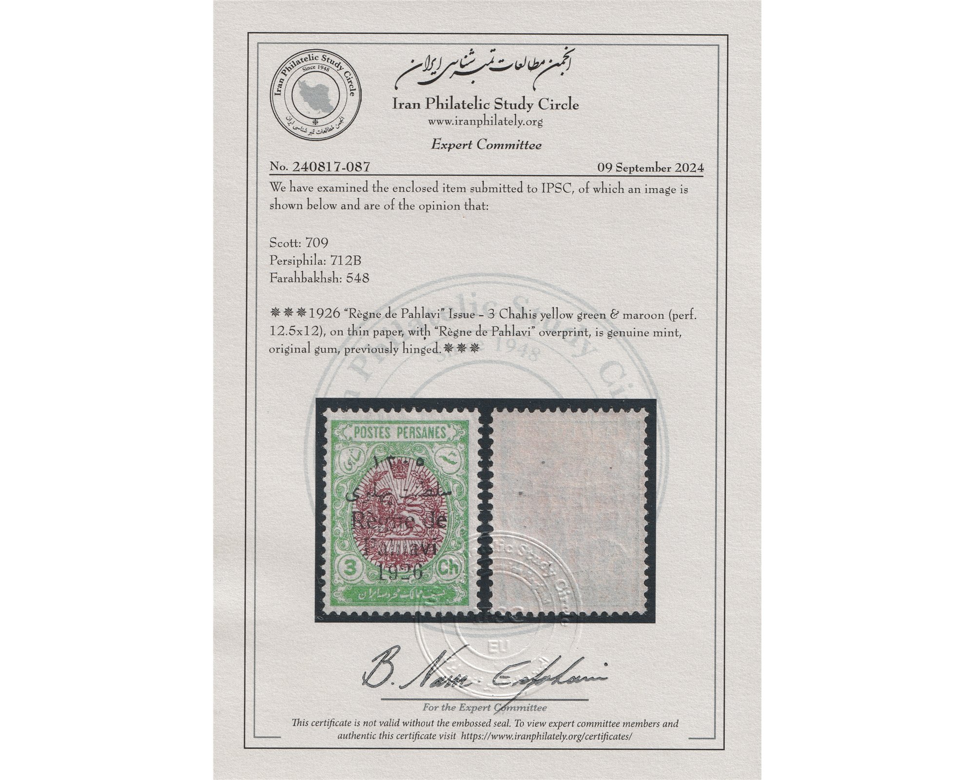 سه شاهی با روچاپ سلطنت پهلوي کاغذ نازکCondition; Mint Light Trace of HingeIPSC Certificate کیفیت: با اثربسیار ضعیف شارنیهبرای دیدن با بهترین کیفیت ماوس کامپیوتر را روی تصویر تکان دهید
