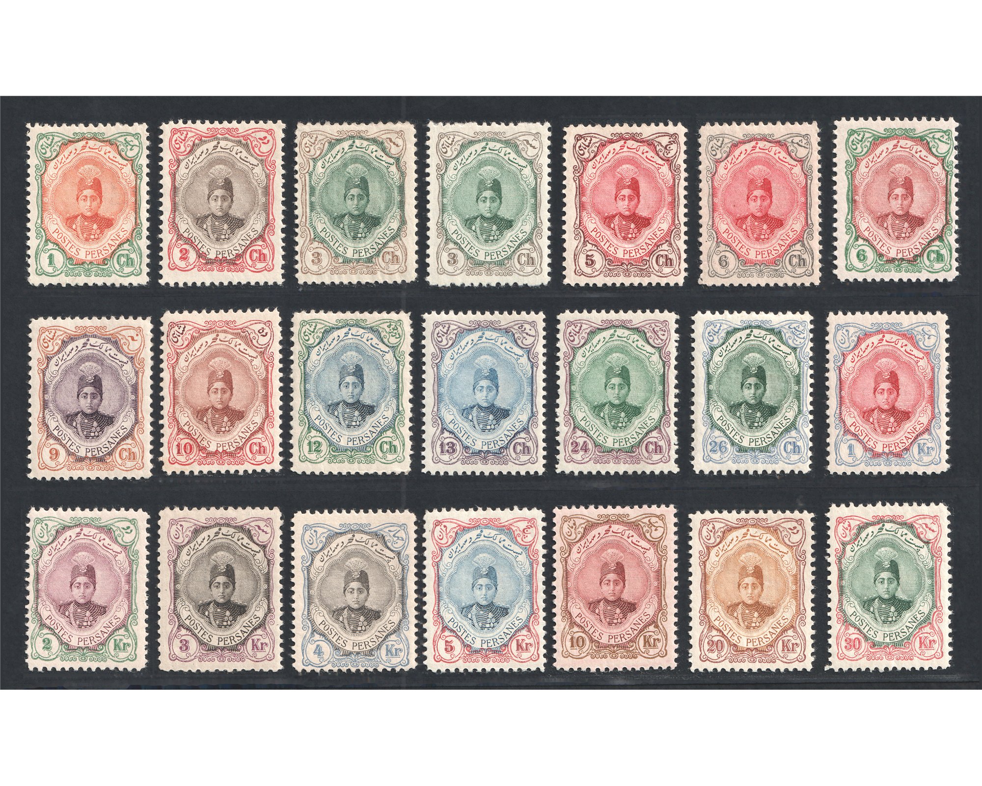 احمد شاه قاجار سری احمدی کوچک سری پرتره ی بلند IPSC Certificate Original Gum Mint Never Hinge All values are Tall Portrait Issue بدونه اثر شارنیه ـ کیفیت چسب عالی