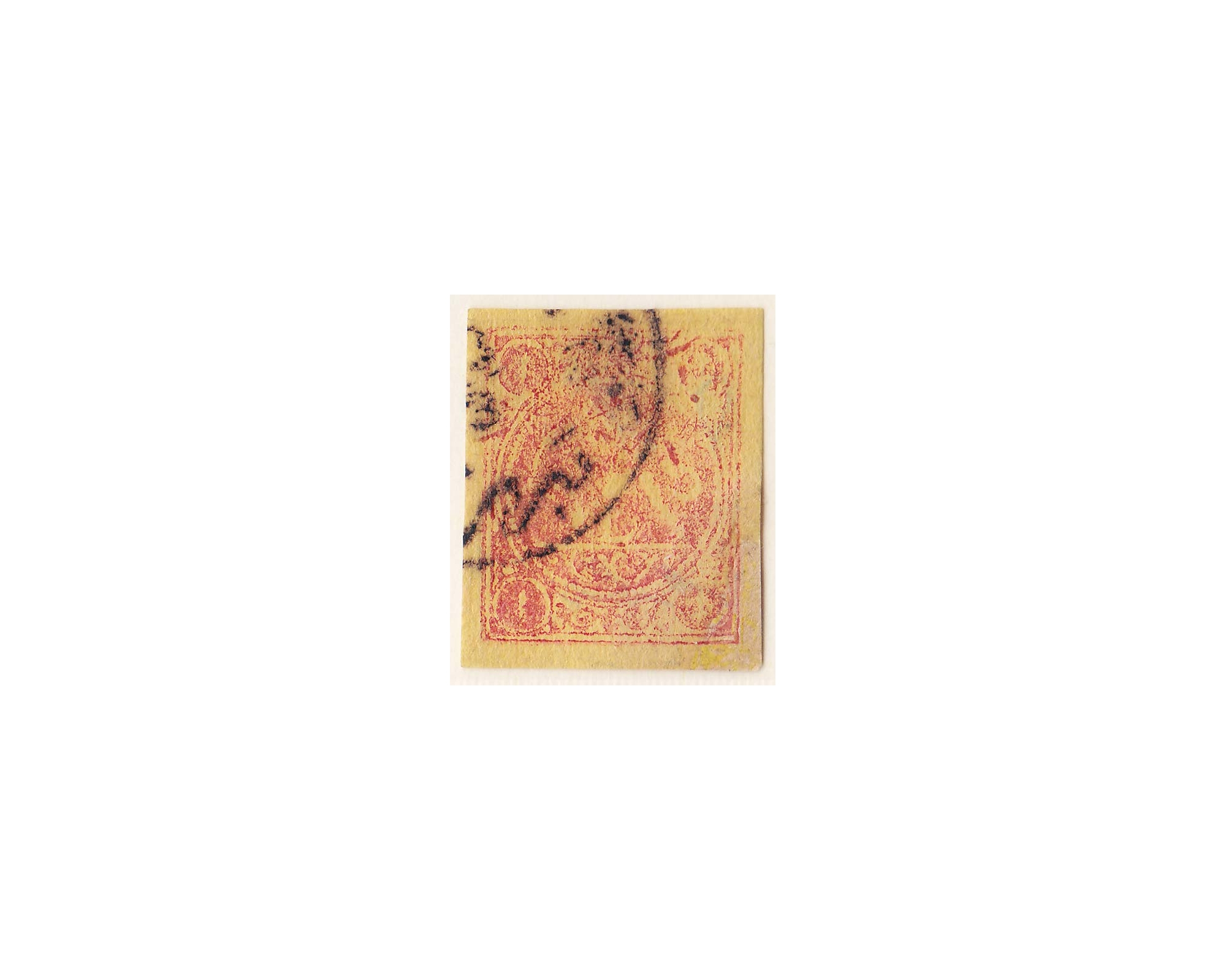 1878 1 Kran Red on yellow paper Type D Signed By Mr. Sadri