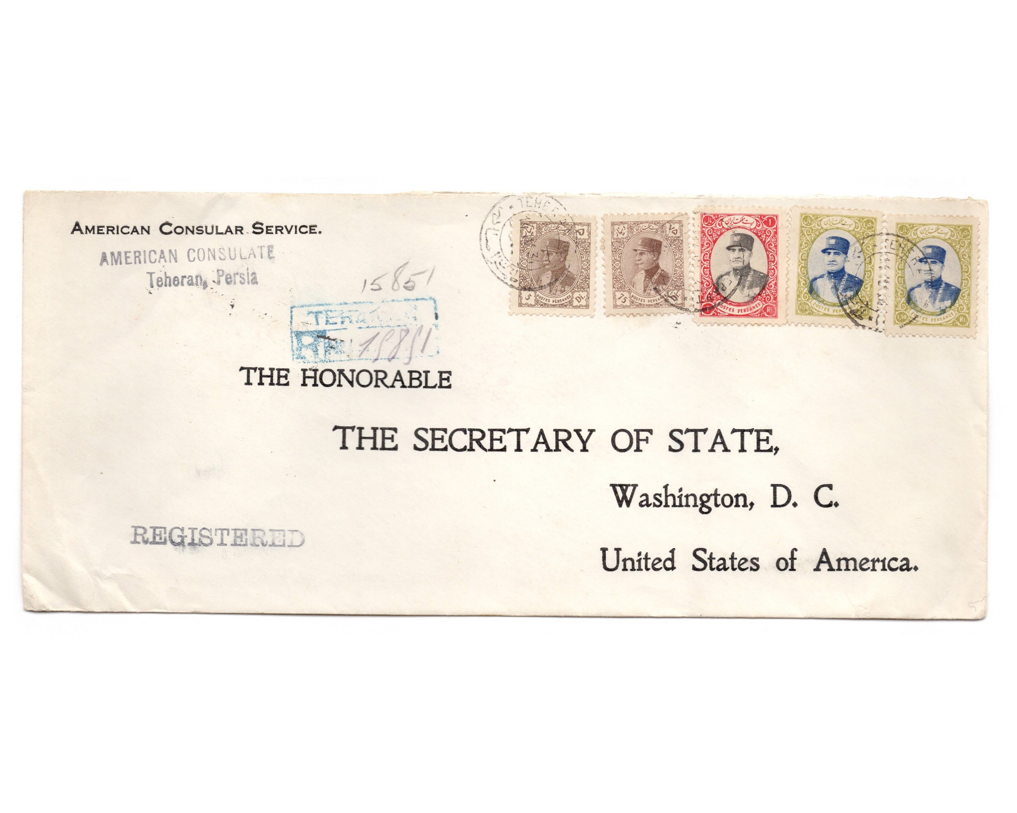 1934 Consolar Mail Tehran ot USA (Franklin Roosvelt Collection)