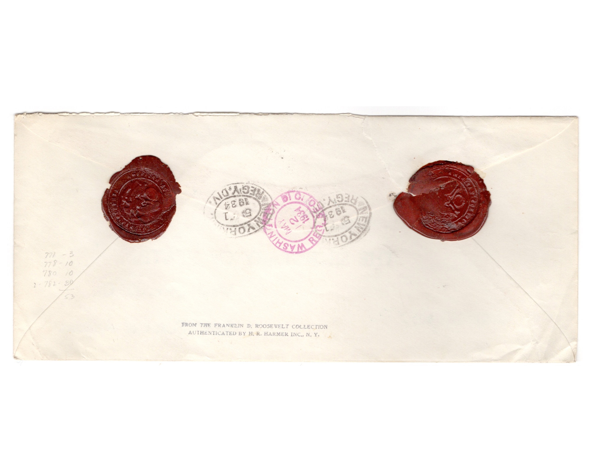 1934 Consolar Mail Tehran ot Washington Cover Sent from US Tehran Embassy to The Secretery of State USA Hand stamped " From the Franklin D. Roosvelt Collection"