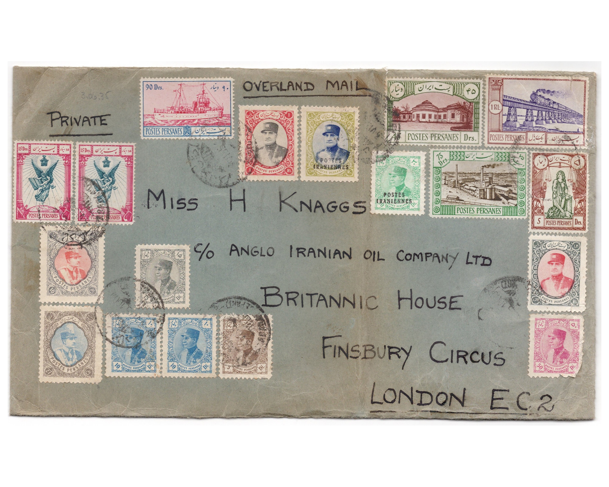1933 Colorfull Franking cover from Abadan to London