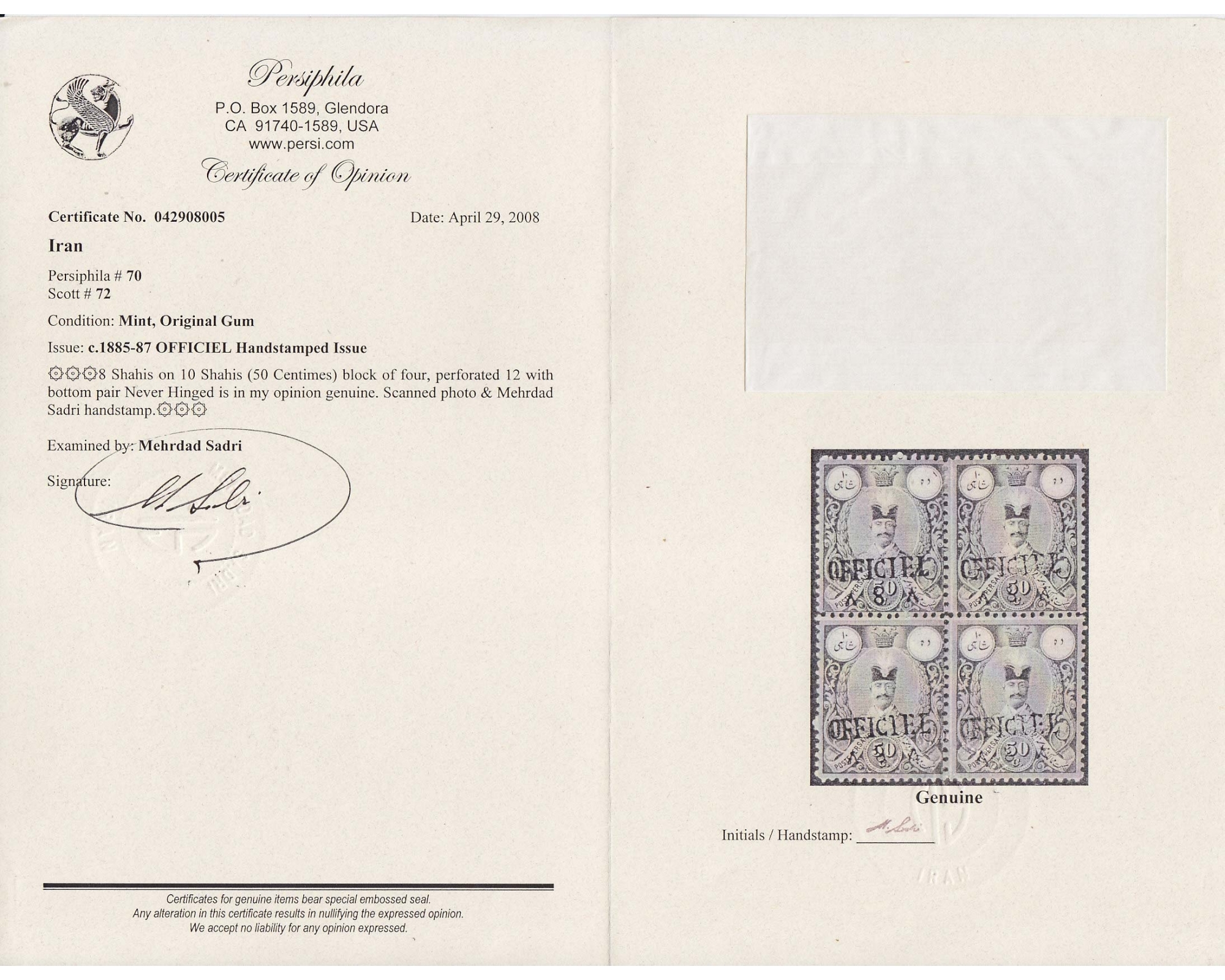 سال ۱۲۴۶ـ بلوکه۱۰شاهی با سورشارژ آفیسیال و گواهی آقای صدری