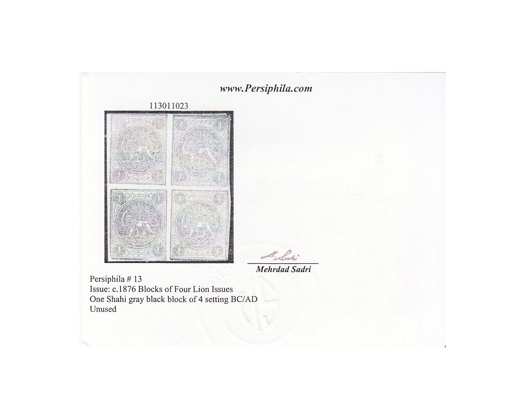 1876 1 Chahi Gray Block 4 Mini Certificate By Mr. Sadri