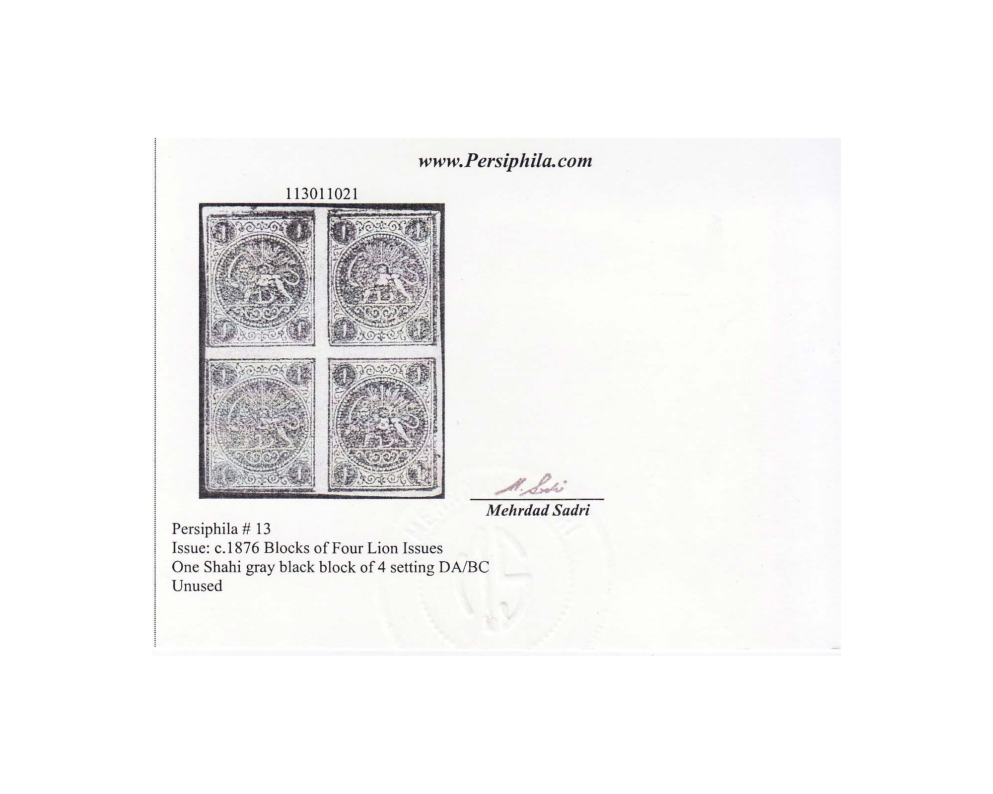 1876 1 Chahi Gray Block 4 Mini Certificate By Mr. Sadri