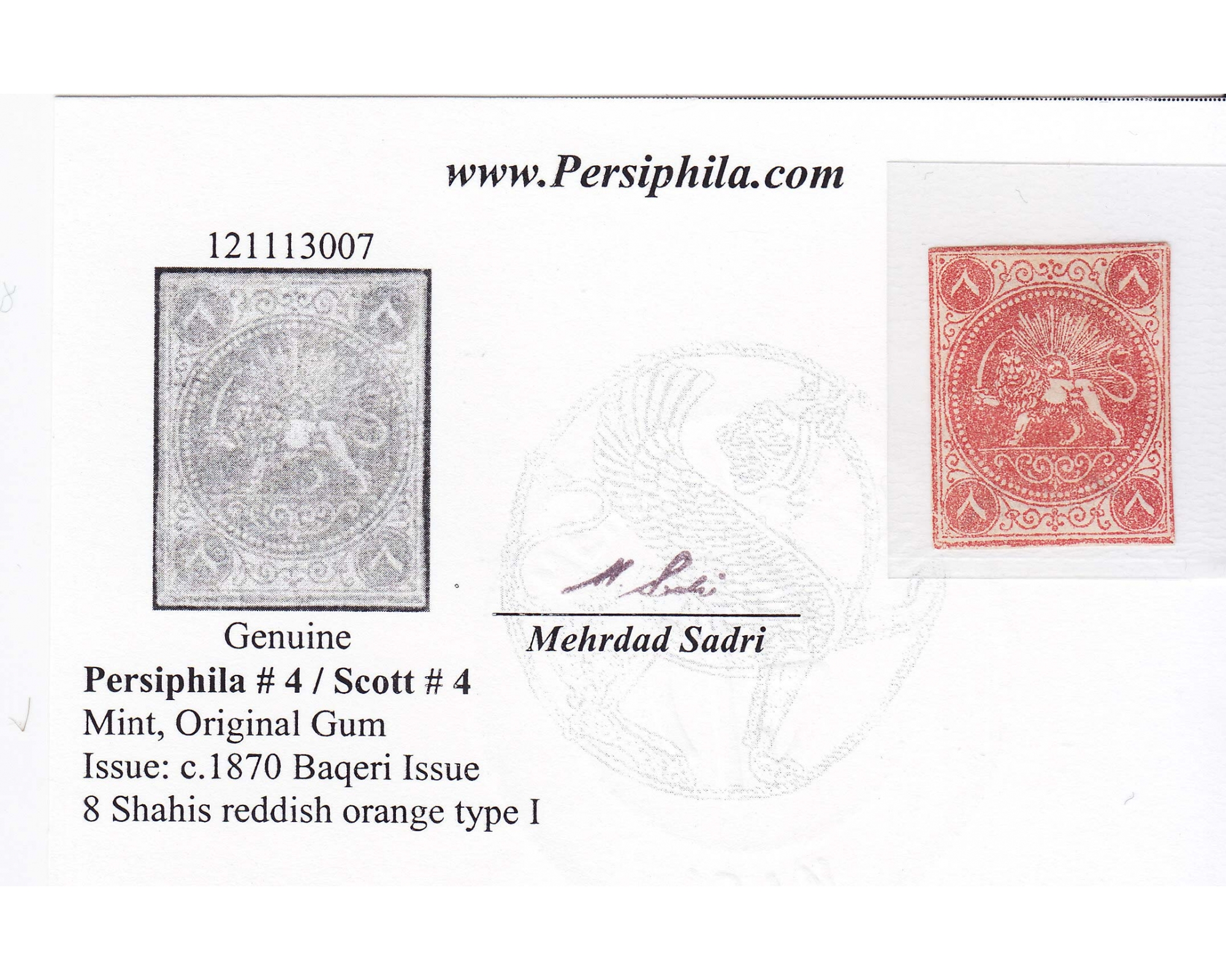 1870 8ch Bagheri Mini Certificate By Mr. Sadri