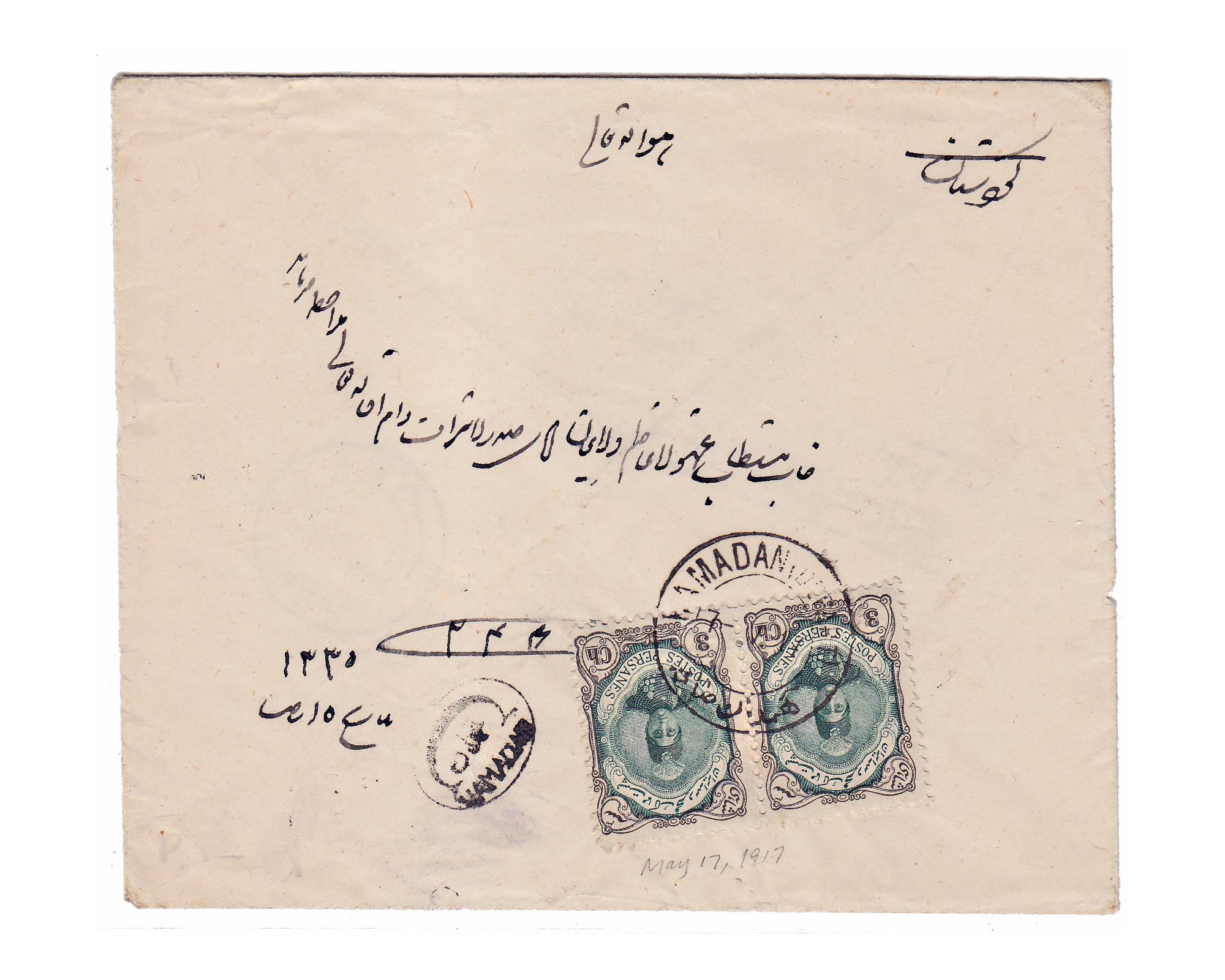 1917 Censored cover from Hamadan to Seneh with Russian Censor