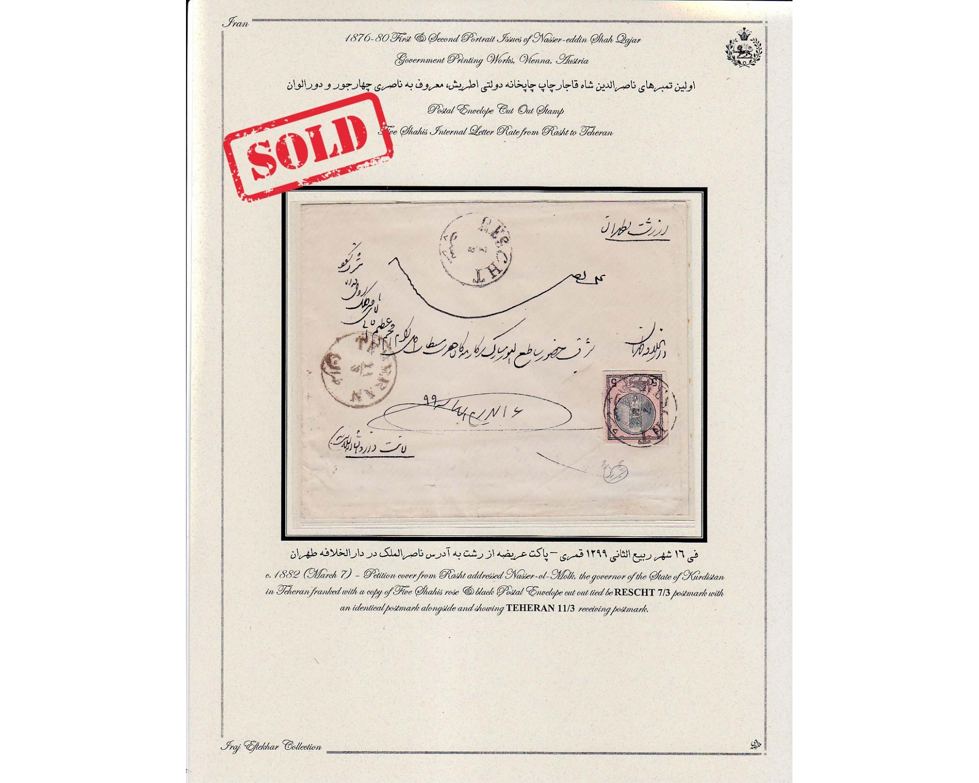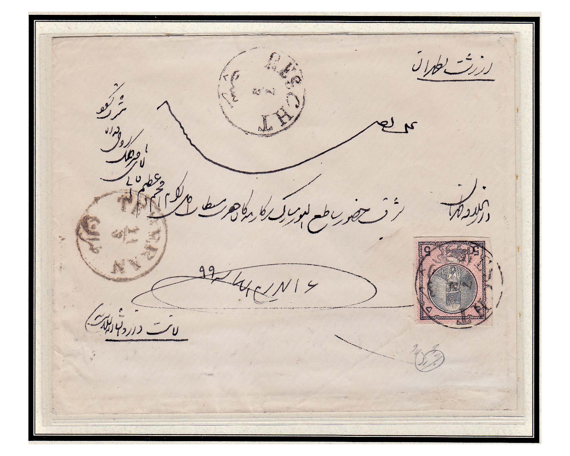 1882 Petition Cover send to Tehran with 5ch Cut Out Stamp