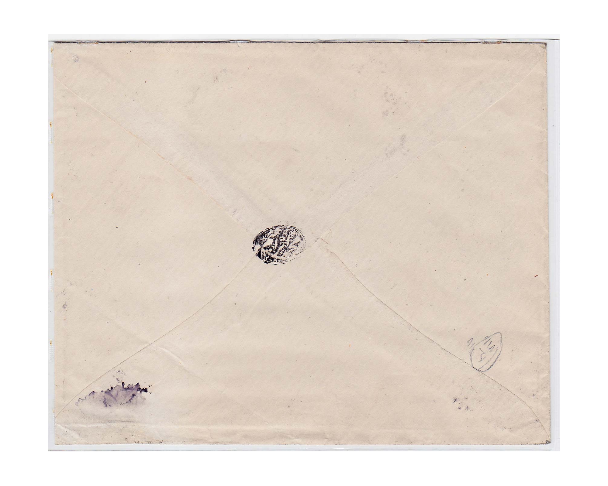 7 March 1882 Petition cover To Isfahan On Persiphial Page Prepared by Mr. Sadri Tied by 5ch Rose and Black Postal Envelop cut out